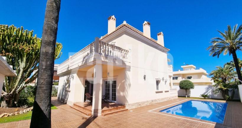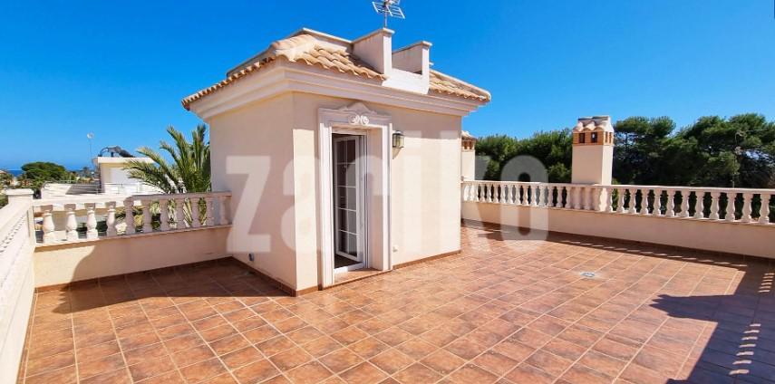 We offer a large and spacious villa in Cabo Roig with an area of 260 sq.m. just 500 meters from the sea.The villa consists of two floors, where there are four bedrooms and four bathrooms with underfloor heating, a spacious living room with a fireplace and access to the terrace, and an open-plan fully equipped kitchen. There is a solarium on the roof of the house (a rooftop area where a relaxation zone or barbecue area can be set up).The villa is located on a plot of 518 sq.m. The property features its own swimming pool and a garden with trees. The house is situated in a quiet area close to necessary services for daily life. When purchasing this property, we provide a residence permit in Spain as a gift!When buying property in Spain, it is possible to obtain residency in Spain. Our company assists in obtaining residence permits of any type.