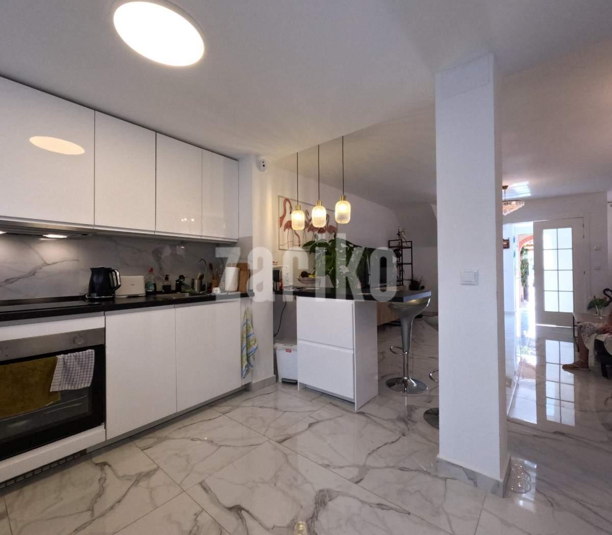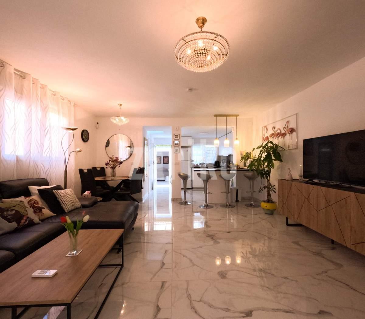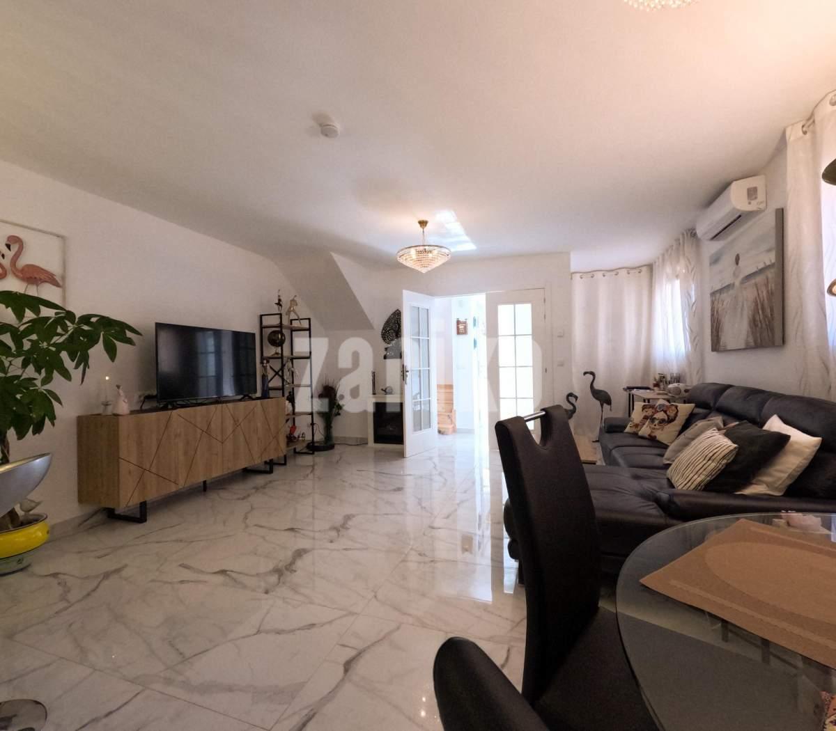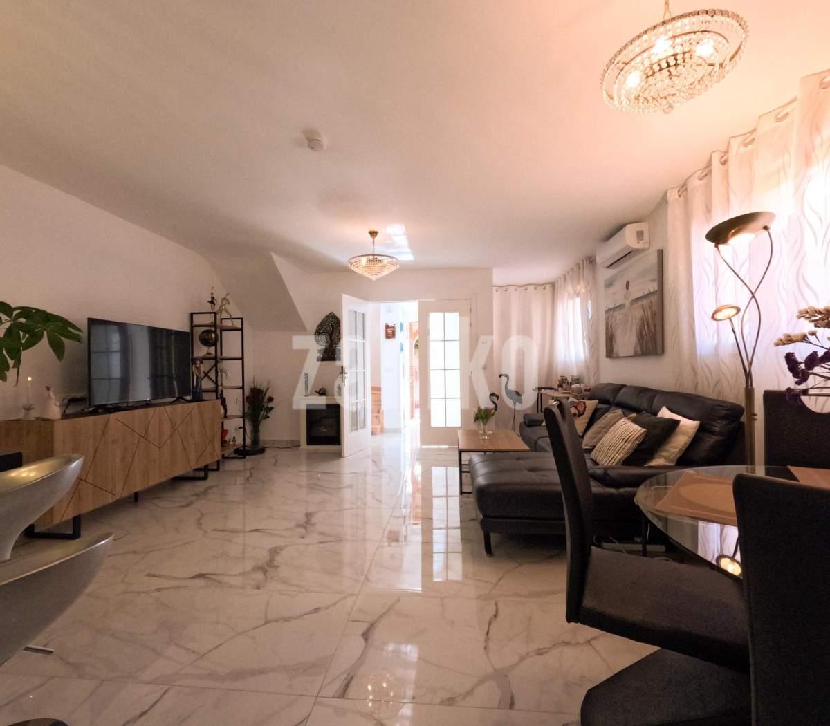 Discover this fantastic corner terraced house located in a quiet and pleasant residential area of Torrevieja, strategically positioned between Los Náufragos Beach and the famous Salt Lakes, just 350 m from the sea. A perfect setting to enjoy the Mediterranean lifestyle all year round. With 116 m² of built area, this corner property offers spacious, bright and well-distributed interiors — ideal as a permanent home, holiday retreat or investment. It features 4 bedrooms, making it perfect for large families, a home office, guest rooms or rental opportunities with excellent potential. The renovated ground floor includes a comfortable living room with underfloor heating, a functional open-plan kitchen with separate laundry area, one bedroom and a full bathroom. From this floor, there is direct access to the private solarium, a highly valued space for sunbathing, relaxing, or enjoying open views in a chill-out atmosphere. On the upper floor, you’ll find the remaining bedrooms, all with good ventilation and natural light. The property also features a terrace, private corner garden (perfect for barbecues, kids’ area or leisure), and a private garage space, a real asset in coastal areas. A standout feature is the installation of photovoltaic solar panels, providing significant energy savings and making the home more efficient and sustainable. Sold semi-furnished, ready to move into or customize. A unique opportunity that combines space, privacy, outdoor living, energy efficiency and a privileged location close to the sea.