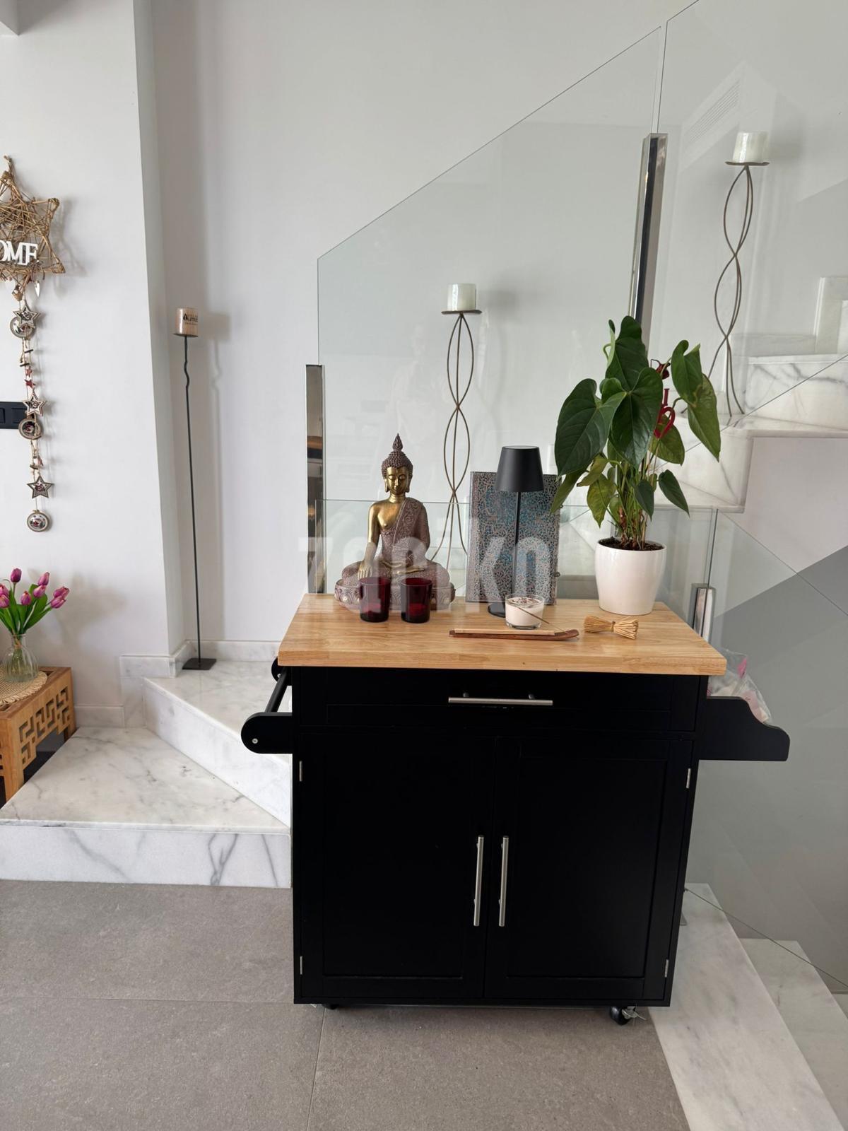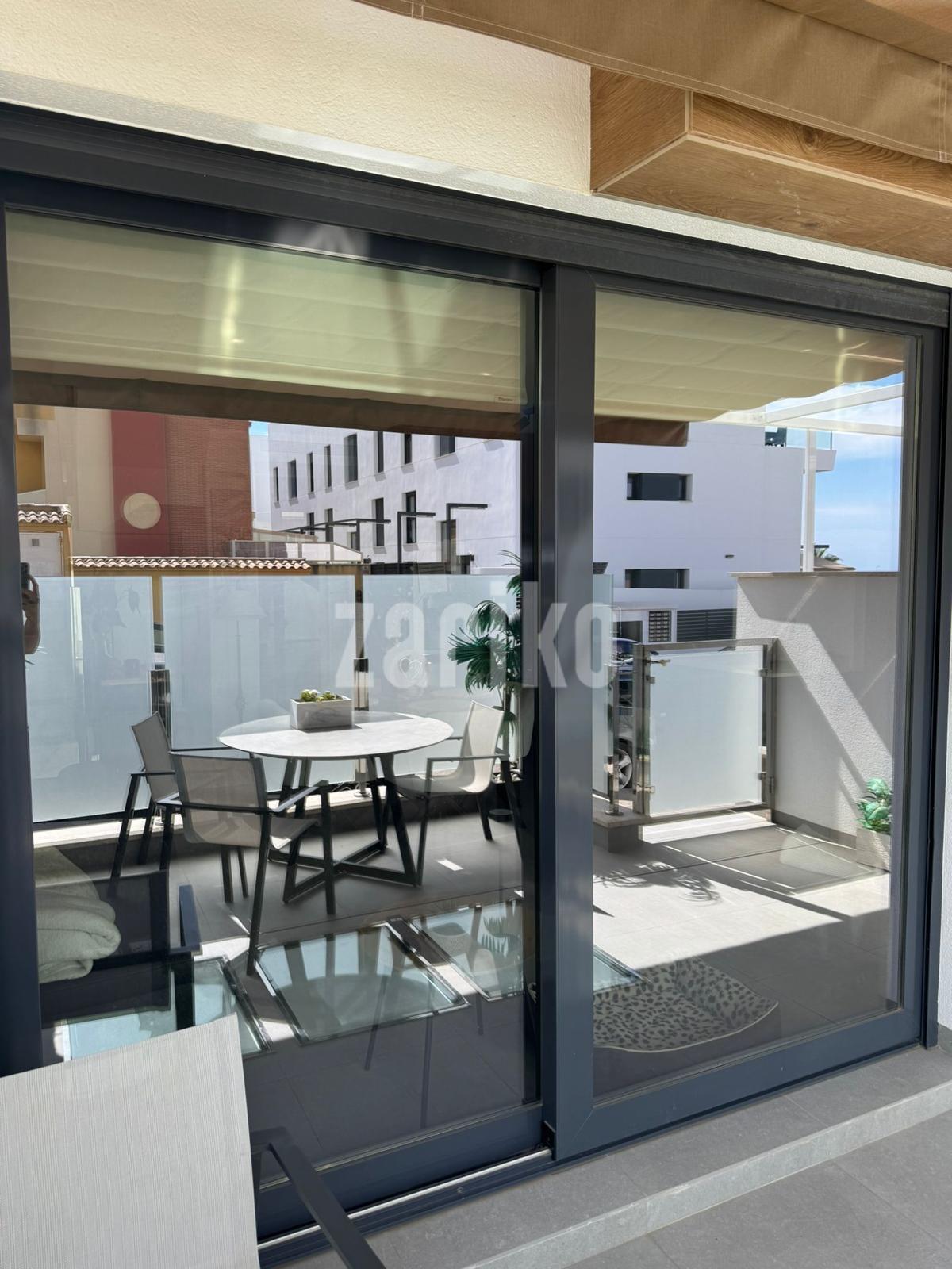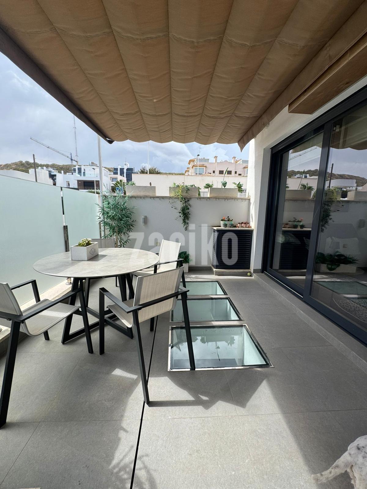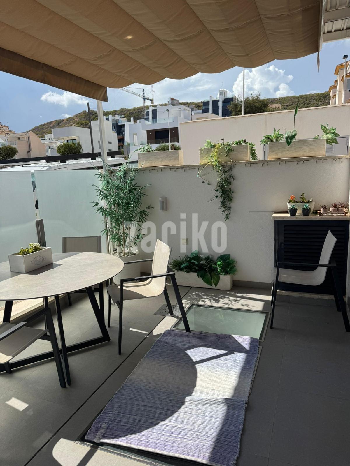 Discover this impressive pre-owned duplex in the exclusive area of Los Secanos, Guardamar del Segura, less than 800 meters from the main beaches. With a constructed area of 110 m² and south-facing, this property offers a perfect layout for enjoying the Mediterranean lifestyle. On the ground floor, you'll find a bright living room with access to a private terrace with skylights that provide natural light to the basement and a pergola; ideal for relaxing while admiring panoramic sea views. The first floor houses a guest toilet and a modern kitchen equipped with premium appliances, next to a gallery with a shower and laundry room. On the second level, there are two cozy double bedrooms, complemented by a full bathroom accessible from different areas. Finally, easily access your master bedroom located on the third floor, where you can once again delight in the spectacular views thanks to its spacious private terrace and exclusive en-suite bathroom. Extras such as central air conditioning (including split system), motorized blinds, and modern installations such as an aerothermal system ensure year-round comfort. Take advantage of the additional benefits: a communal pool surrounded by nearby natural landscapes, as well as easy access to nearby public transportation, schools within reach, etc. Certify your dreams! This home is perfect whether you are looking for a permanent or vacation residence. Contact us for more information.