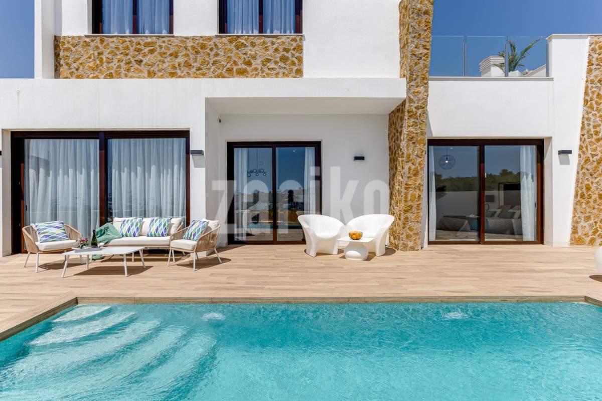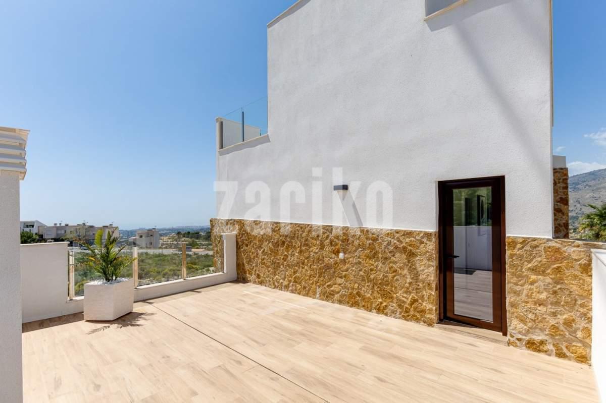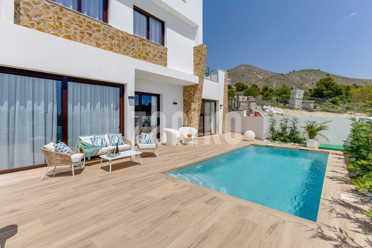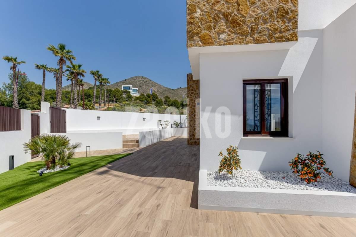 NEW BUILD VILLAS IN BALCON DE FINESTRAT New Build modern villas in Balcon de Finestrat. Wide and bright villas with 3 bedrooms and 2 bathrooms, open plan kitchen with living-dining area, beautiful terrace, private garden with the pool and parking space. Combination of wood and natural stone makes the house modern and rustic at the same time. Villas located 10 minutes from Benidorm and only 2 km from Finestrat. The ride to Tierra Mitica where you can spend nice time with family will take 6 minutes. This location makes it a great choice for a holiday home. Finestrat located in the Marina Baixa region of the Costa Blanca, close to neighbouring Benidorm and about 40 kilometres from the city of Alicante and the international airport. The village is situated on the mountainside of Puig Campana and offers beautiful views of the mountains, the coast and the Mediterranean Sea. Benidorm is just a five-minute drive from the properties and offers all the services you would need including shops, bars, restaurants, supermarkets, banks, pharmacies and several private international schools. Close to the beaches of Levante, Poniente and Cala de Finestrat, with more than 6km in length that are among the best in Europe awarded by the European Union with Blue Flags. All leisure services such as the theme parks of Aqua Natura, Terra Mítica, Terra Natura, Aqualandia and Mundomar, Sierra Cortina and Villaitana Golf courses, hiking and climbing in Puig Campana an incomparable natural setting or enjoy of nautical sports.