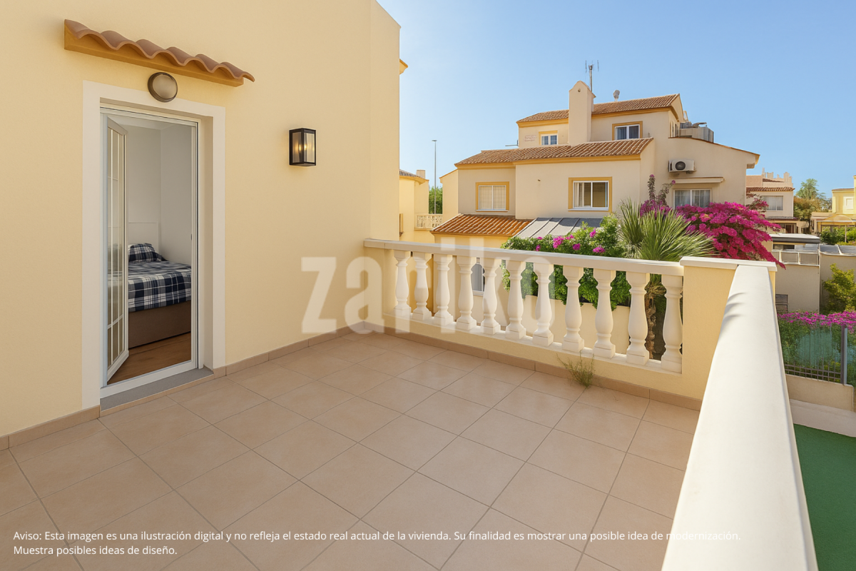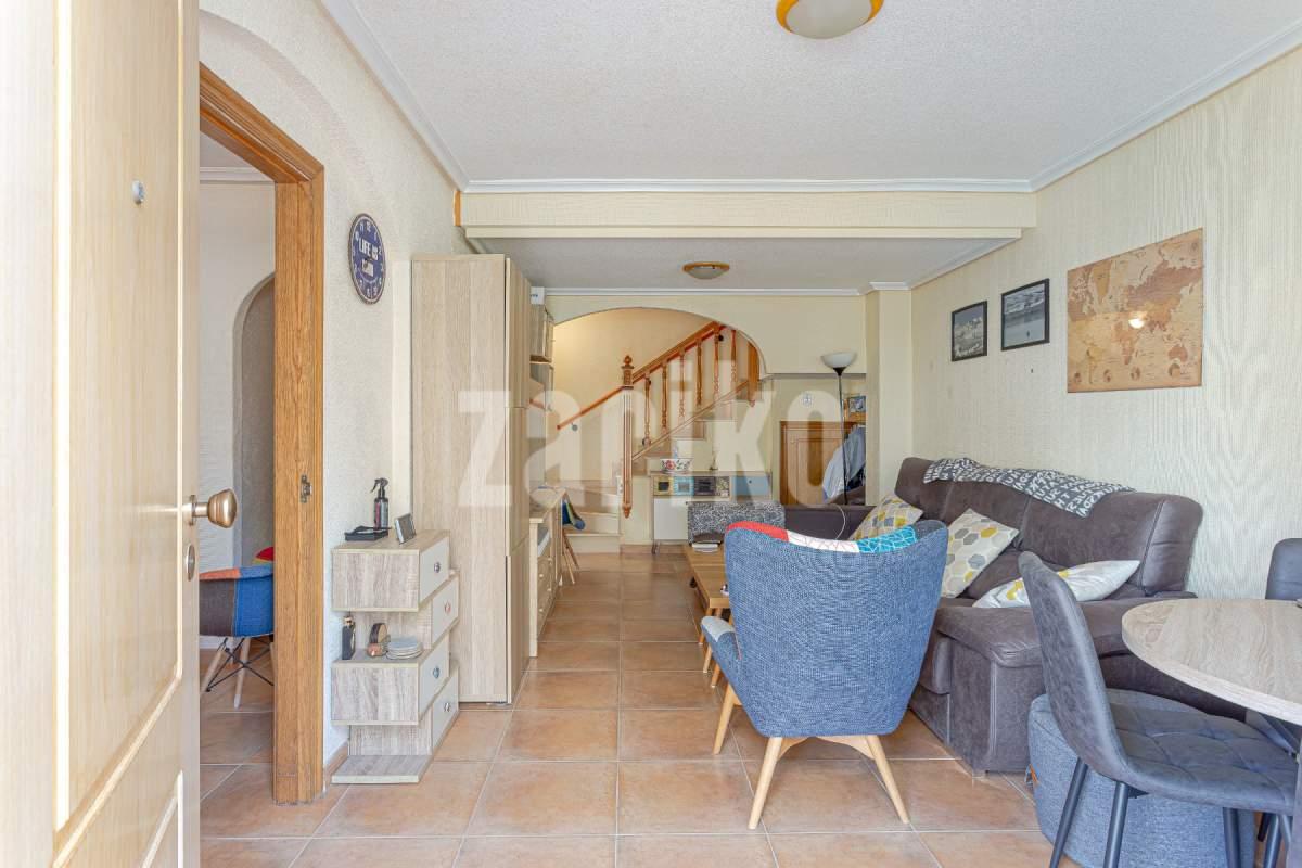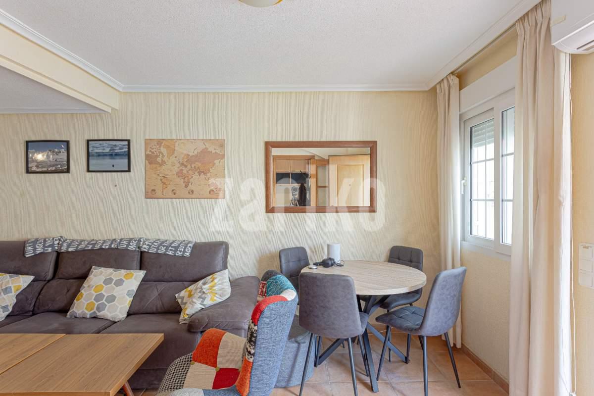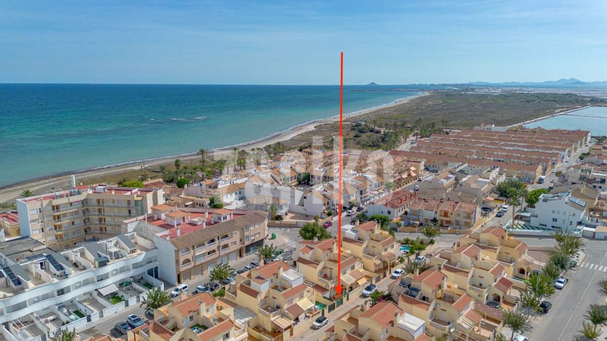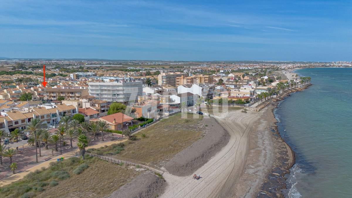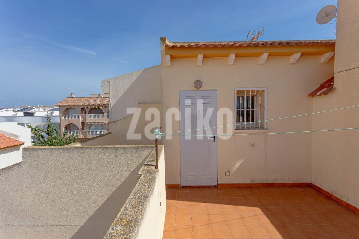 This 86 m² townhouse for sale is located in El Mojón, one of the most peaceful coastal areas of Pilar de la Horadada, just 300 metres from the sea, close to beaches, the promenade and parks, and surrounded by all essential services such as supermarkets, restaurants and sports areas.The house is divided into two floors:Ground floor: spacious 22 m² living-dining room, perfect for family gatherings; independent kitchen fully equipped; one bedroom on this level with easy access; full bathroom; and a storage room ideal for bikes, beach gear or tools. There is also a front terrace to enjoy the outdoors.First floor: features two bright bedrooms, both with built-in wardrobes, a full bathroom and a private terrace.On the rooftop there is a private solarium, ideal for sunbathing, relaxing or enjoying the sea breeze.Its excellent location makes it perfect as a permanent residence or a holiday home in the South Costa Blanca, with the beach, promenade and green areas just a short walk away.