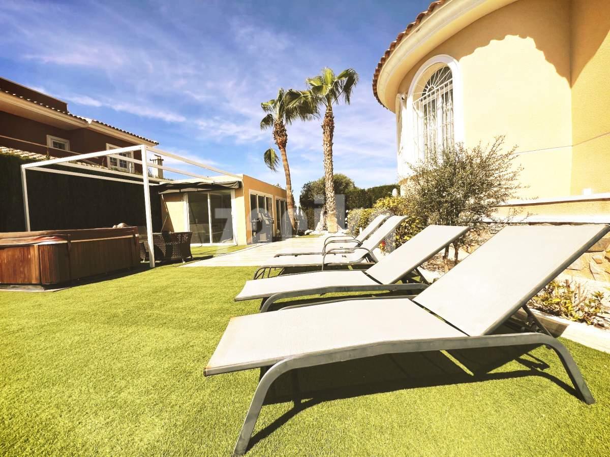 Luxury Villa in Ciudad Quesada Immerse yourself in absolute luxury in this dream villa located in Ciudad Quesada, just 8 km from the beautiful beaches of Guardamar and 35 km from Alicante Airport. With quick access to La Marquesa Golf Course just 5 minutes away, this property offers the perfect blend of comfort and elegance. It boasts 5 spacious bedrooms, 4 bathrooms, and a modern open-plan kitchen, ideal for everyday living and special gatherings. In the basement, enjoy a full entertainment space with a pool table, foosball, and a private cinema room. For personal care, indulge in the exclusive sauna and hammam. The outdoor area is equally impressive, featuring a large garden, pool, jacuzzi, and an impressive outdoor kitchen, making every gathering a unique experience. This villa is perfect for those seeking a luxurious lifestyle close to golf and the sea. Contact us to schedule your visit and discover the exceptional lifestyle this villa can offer you. Don’t miss this opportunity!