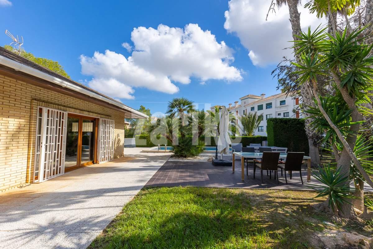 This magnificent house is located in the Las Filipinas area (Villamartín urbanization) on a large plot of 1,510 m², offering privacy and an exceptional outdoor environment. The property has 366 m² of built space, with five bedrooms, three bathrooms, a living room, and a dining room, providing comfort and functionality for the whole family. It also includes a garage and a storage room, offering additional space for storage and vehicles.Among its features are individual heating and a private south-facing pool that enjoys sunlight all day, perfect for relaxation and enjoyment during the warmer months. The garden surrounding the house completes a peaceful and green environment, ideal for rest or outdoor living.The property is approximately 4–5 km from the beaches of Costa Blanca South, which is about an 8–10 minute drive. The popular La Zenia Boulevard shopping center is just 5–8 minutes away by car, offering a wide range of shops, restaurants, and entertainment. Regarding transport and access, the urbanization is well connected to the AP‑7 motorway and the N‑332 road. Additionally, supermarkets, restaurants, bars, and essential services are within walking distance or just a few minutes away, and several golf courses are nearby, making the area particularly attractive for both permanent residents and vacationers.