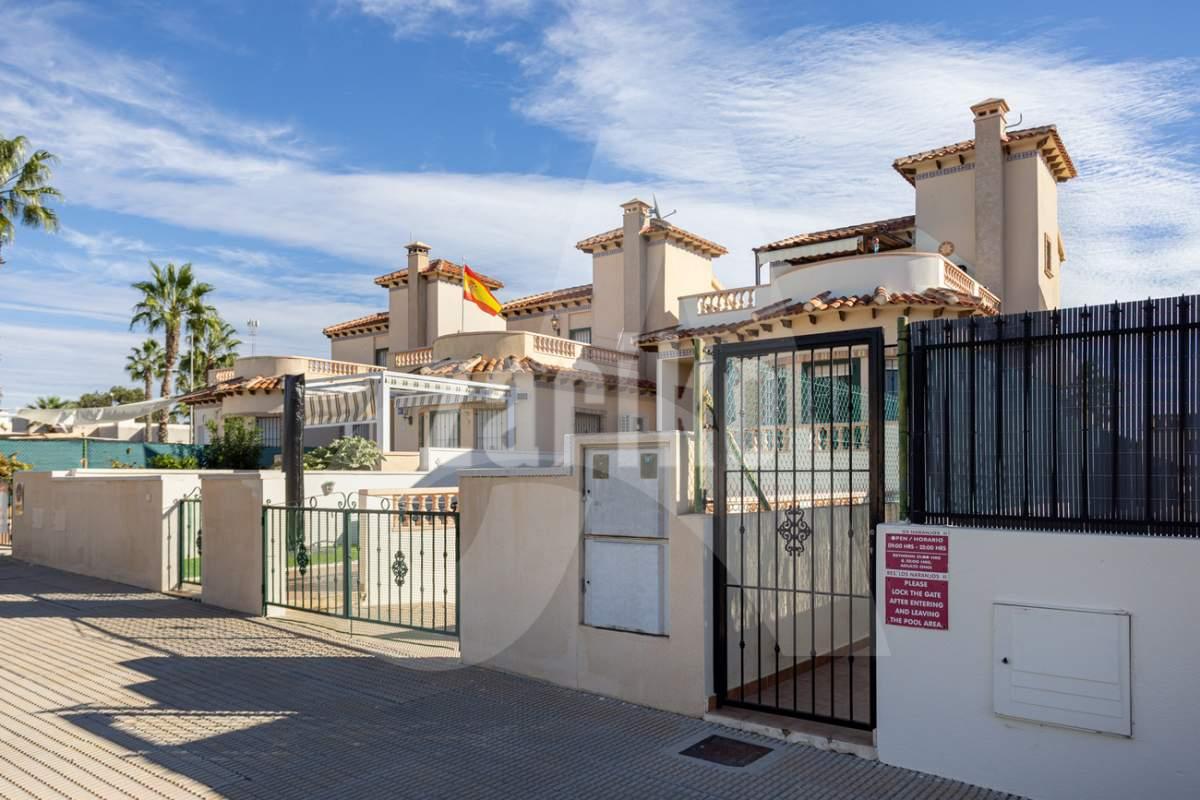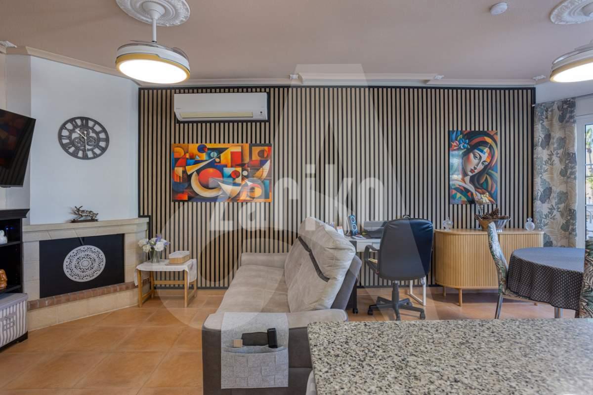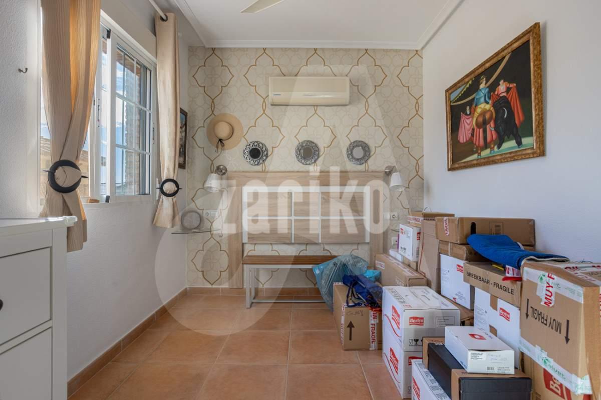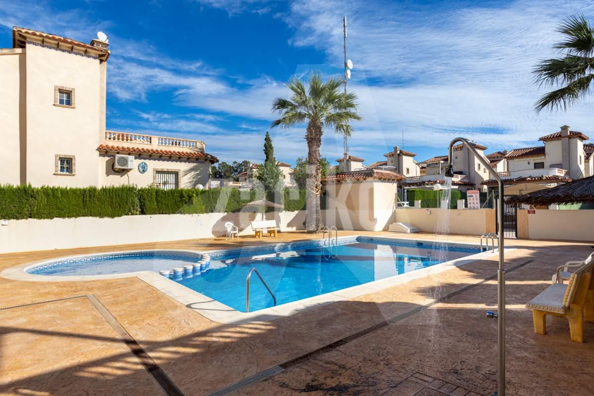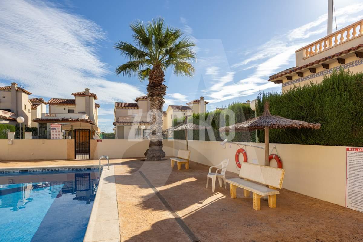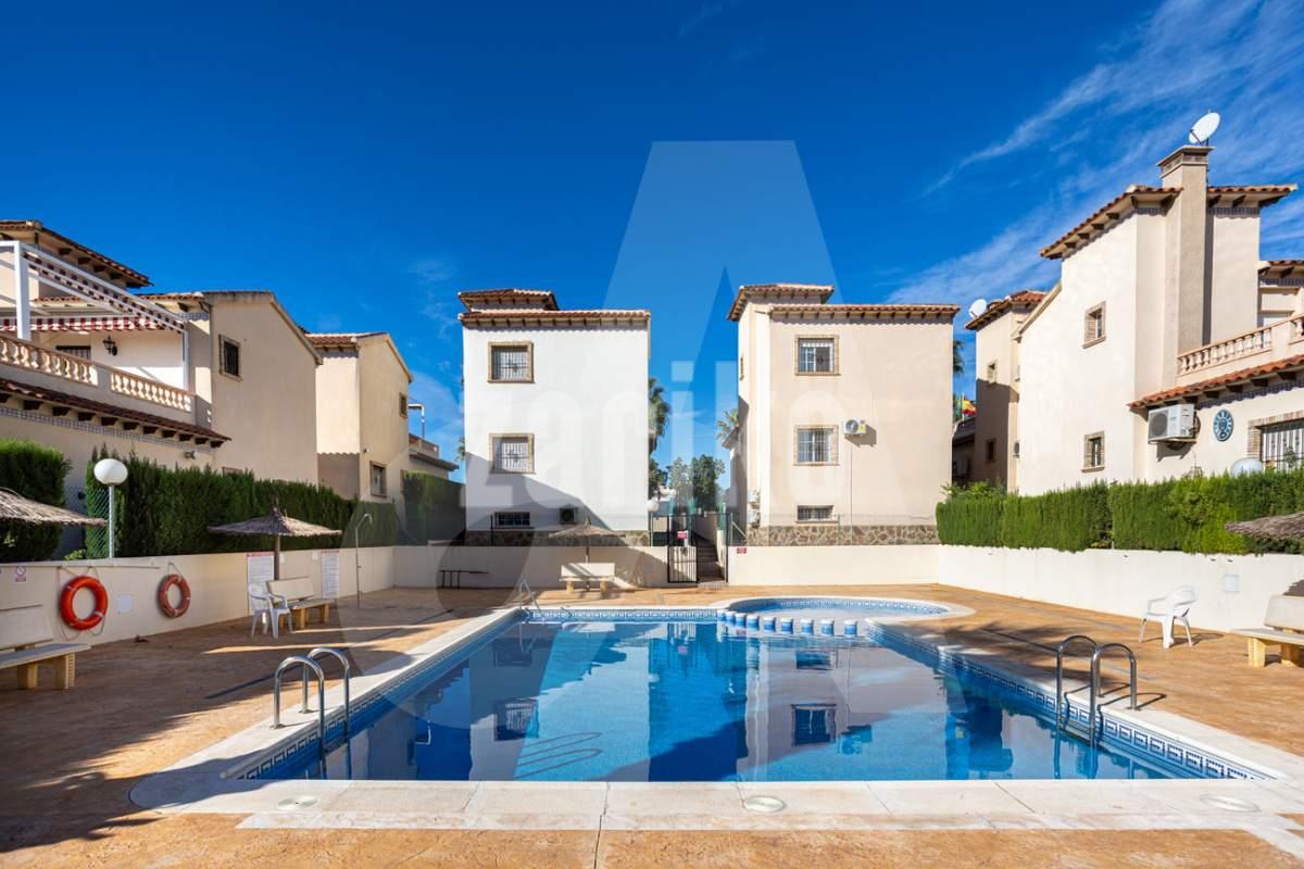 Cosy villa for sale in El Raso Urbanisation, Guardamar del SeguraDiscover this charming and perfectly maintained villa in the popular El Raso urbanisation in Guardamar del Segura. The property offers an ideal combination of comfort, space and tranquillity, a short distance from the beautiful beaches of the Costa Blanca.You enter the villa via the private car park and a cosy terrace, perfect for enjoying the Spanish outdoor life.Inside you will find a bright living room, fully furnished with a dining table, chairs, recliner sofa, TV cabinet and fireplace. Both air conditioning and fans ensure a pleasant indoor climate all year round.The open kitchen, which is directly connected to the living room, is equipped with all the necessary appliances.On the ground floor, there is a fully furnished bedroom with a double bed, bedside tables, dressing room, air conditioning and fan. The bathroom on this floor was renovated in 2025 and has a modern shower, toilet and washbasin.The upper floor offers a second bedroom with a dressing room (no bed) and a renovated bathroom with a shower, washbasin and toilet. From the hallway, you have access to a spacious sun terrace, where you can enjoy the sun in complete privacy.A big plus is the fully basemented space, divided into three separate rooms. The basement has air conditioning, tiled floors, two windows, cupboards, a fridge and freezer, and is accessible from both inside and outside — ideal as extra living space, a hobby room or storage.The property has air conditioning in all rooms and fans in the living room and bedrooms. At the rear of the property (accessible via a gate on the street side) is a communal swimming pool, where you can relax and unwind.The community fees are only €360 per year, including maintenance of the urbanisation, the swimming pool, water and electricity for the communal areas.This property is ready to move into and ideal as a permanent residence, holiday home or investment on the Costa Blanca.