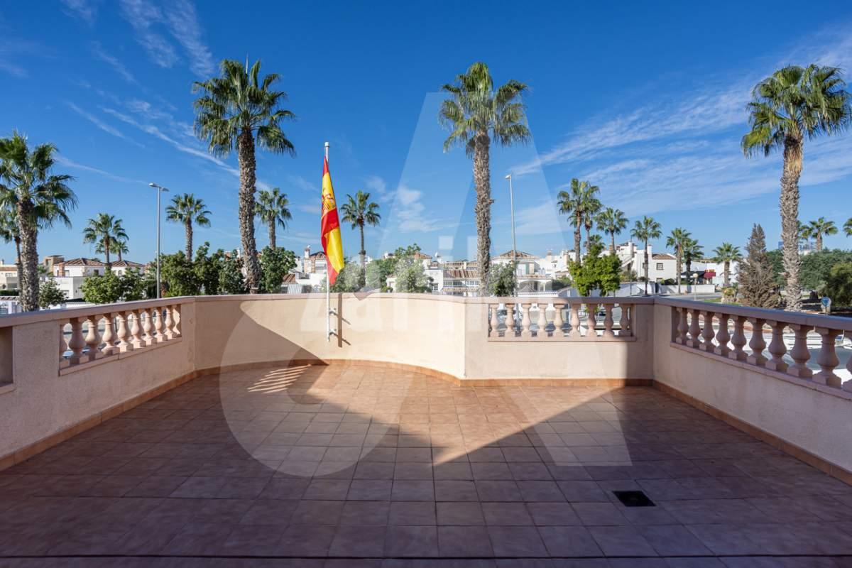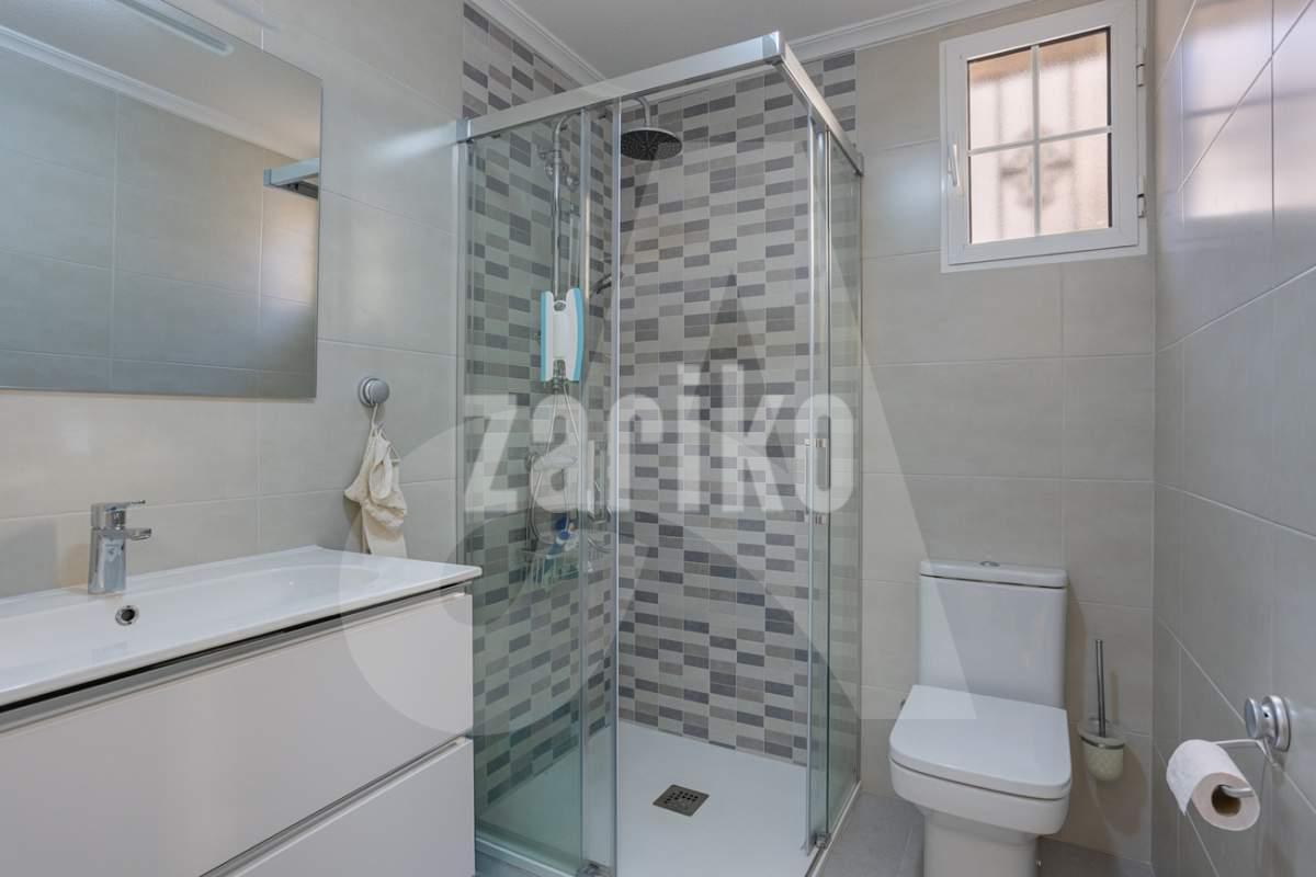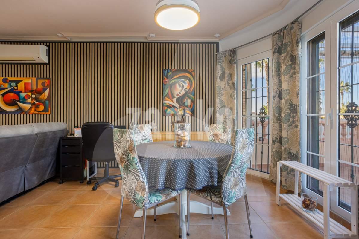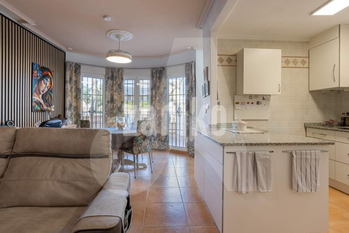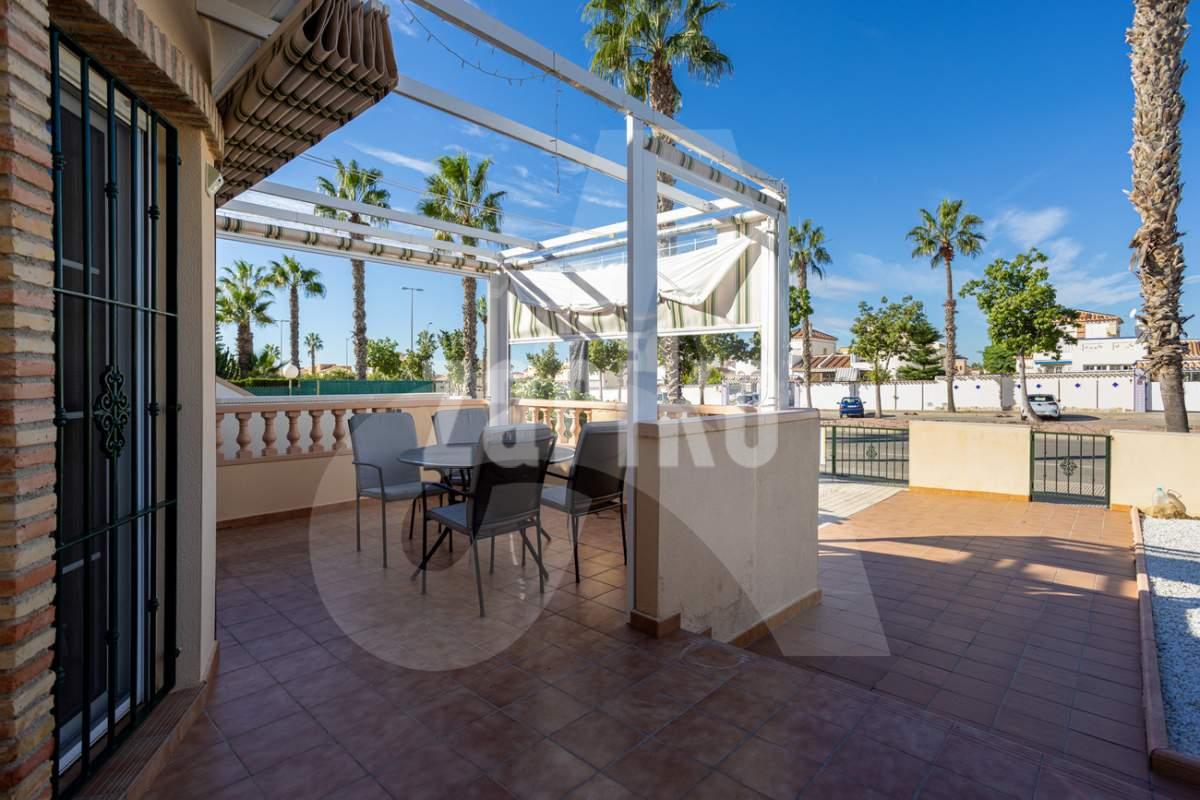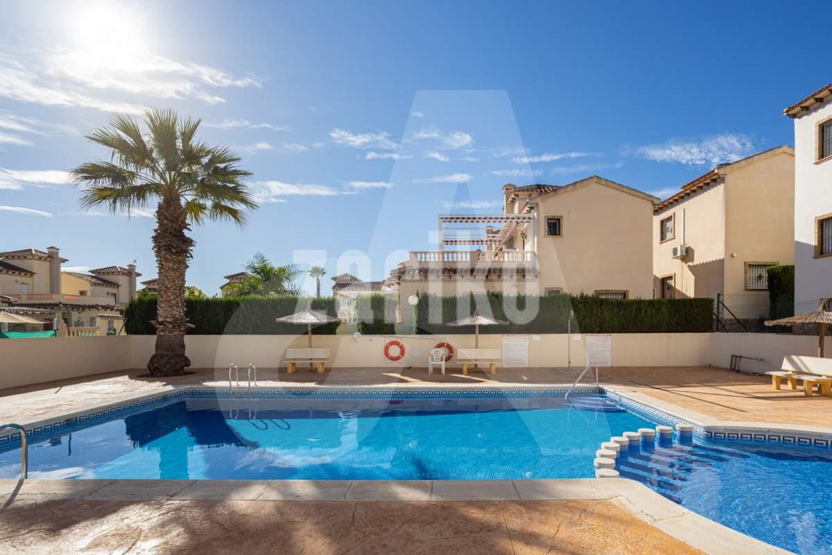 Cosy villa for sale in El Raso Urbanisation, Guardamar del SeguraDiscover this charming and perfectly maintained villa in the popular El Raso urbanisation in Guardamar del Segura. The property offers an ideal combination of comfort, space and tranquillity, a short distance from the beautiful beaches of the Costa Blanca.You enter the villa via the private car park and a cosy terrace, perfect for enjoying the Spanish outdoor life.Inside you will find a bright living room, fully furnished with a dining table, chairs, recliner sofa, TV cabinet and fireplace. Both air conditioning and fans ensure a pleasant indoor climate all year round.The open kitchen, which is directly connected to the living room, is equipped with all the necessary appliances.On the ground floor, there is a fully furnished bedroom with a double bed, bedside tables, dressing room, air conditioning and fan. The bathroom on this floor was renovated in 2025 and has a modern shower, toilet and washbasin.The upper floor offers a second bedroom with a dressing room (no bed) and a renovated bathroom with a shower, washbasin and toilet. From the hallway, you have access to a spacious sun terrace, where you can enjoy the sun in complete privacy.A big plus is the fully basemented space, divided into three separate rooms. The basement has air conditioning, tiled floors, two windows, cupboards, a fridge and freezer, and is accessible from both inside and outside — ideal as extra living space, a hobby room or storage.The property has air conditioning in all rooms and fans in the living room and bedrooms. At the rear of the property (accessible via a gate on the street side) is a communal swimming pool, where you can relax and unwind.The community fees are only €360 per year, including maintenance of the urbanisation, the swimming pool, water and electricity for the communal areas.This property is ready to move into and ideal as a permanent residence, holiday home or investment on the Costa Blanca.
