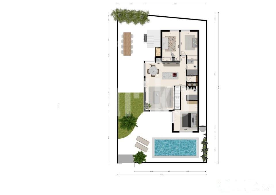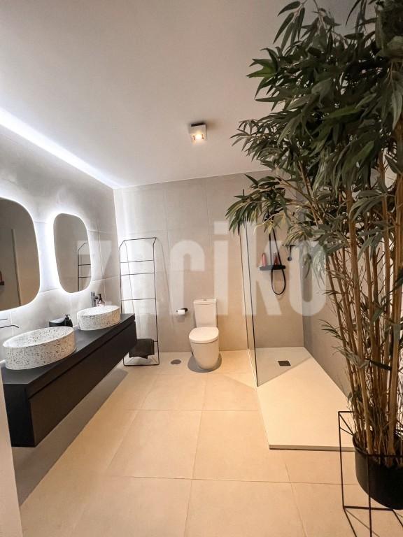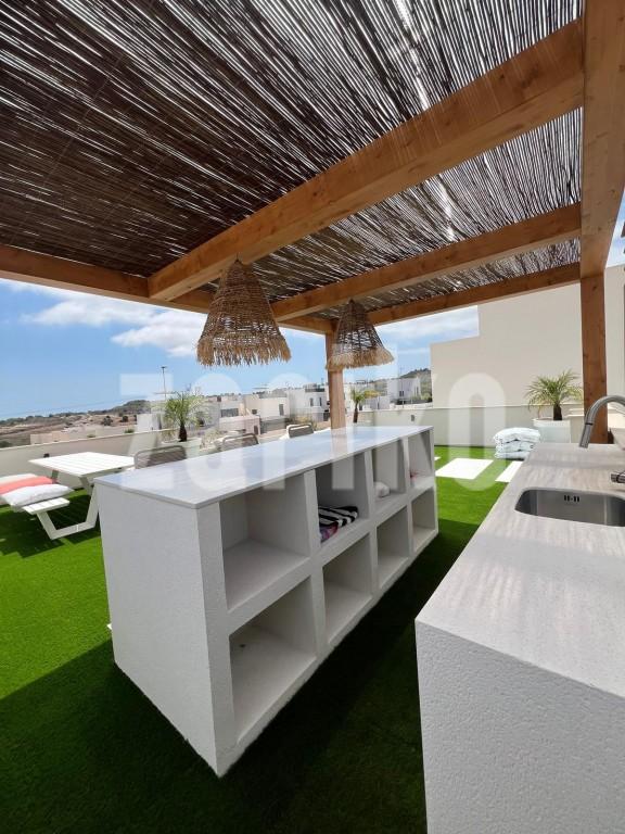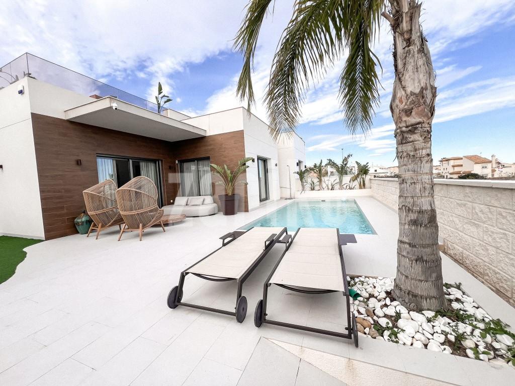 luxury villa in San Miguel De Salinas. This luxurious home boasts no less than 4 bedrooms and 3 bathrooms. The property is south-east facing and enjoys plenty of natural light thanks to the open spaces and large windows.On the ground floor, the villa has a spacious open-plan living and dining area with modern kitchen fully equipped with high-quality materials and appliances, as well as a quooker. There are 3 bedrooms and one en -suite with an en-suite bathroom. The second bathroom is on the same floor with the same high-quality finishes. Underfloor heating is provided in the living room, kitchen and all bathrooms. The villa has all kinds of extras: an alarm system, cameras, air conditioning, fly screens and electric shutters.Downstairs there is one bedroom with en -suite bathroom, which also offers the possibility to make 3 more bedrooms. These rooms are now used as a gym with full professional equipment. A laundry with worktop, a large storage room and a desk.The garden with swimming pool has large terraces where you can place garden furniture for outdoor dining and a barbecue area. The large solarium has a full outdoor kitchen with cold and hot water and a bar where you can enjoy the fantastic views with your friends and family. The villa is equipped with new solar panels, making it an eco-friendly and sustainable option for buyers interested in renewable energy.In short, this modern property in one of the Costa Blanca's most exclusive areas is a unique opportunity not to be missed. It offers a great quality of life and the opportunity to enjoy the best amenities, climate and natural beauty of this part of Spain.Interested buyers should act quickly to ensure they don't miss this opportunity.