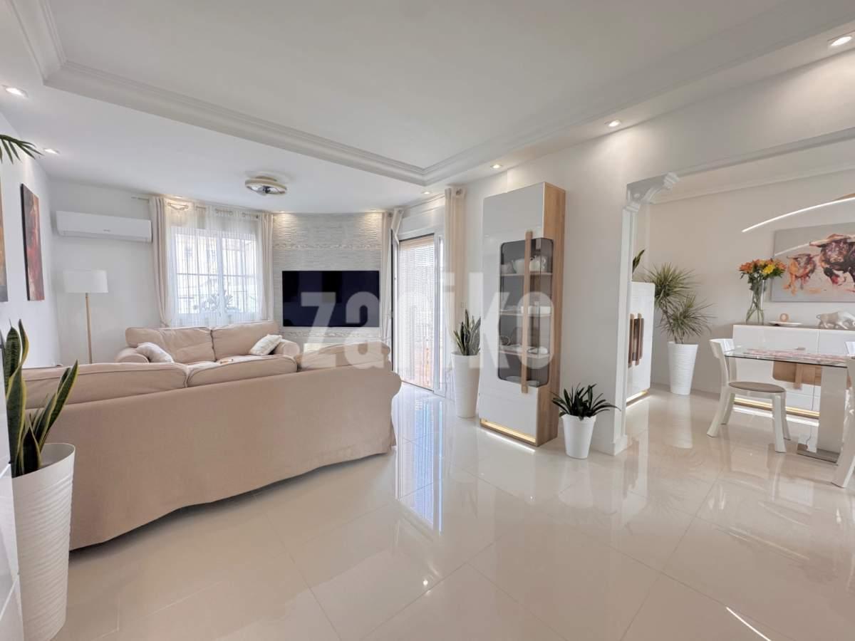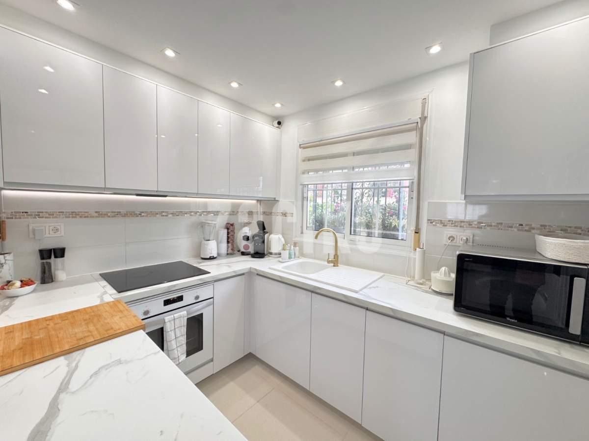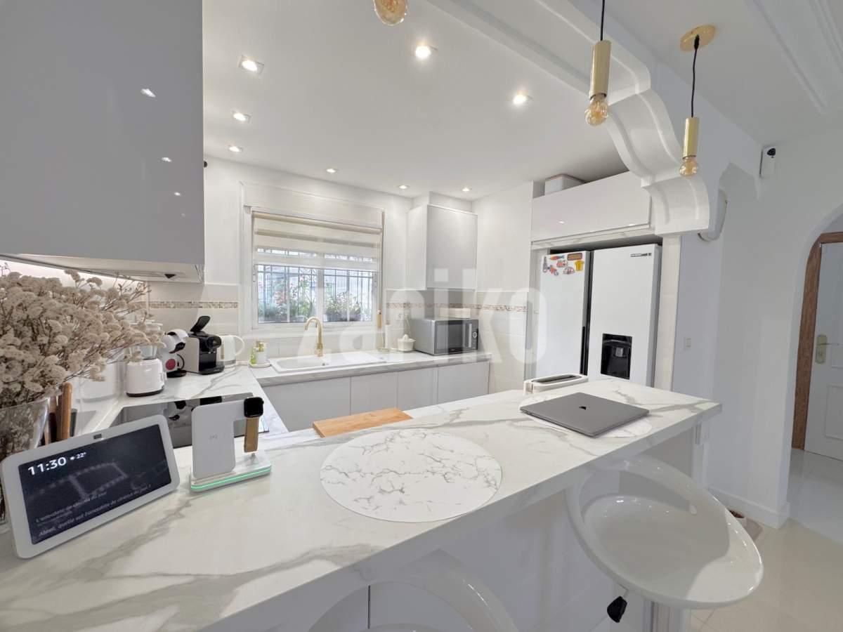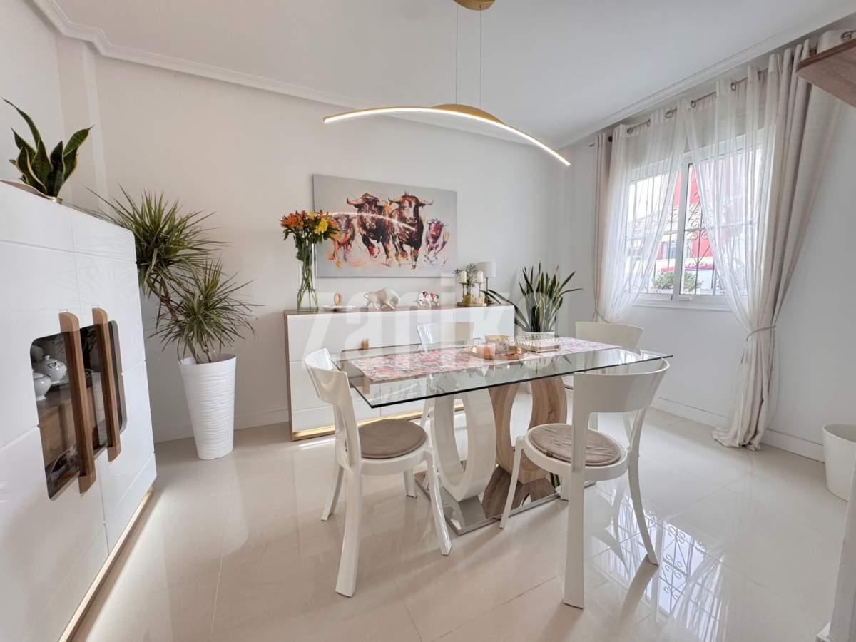 Discover this magnificent, fully and carefully renovated 3-story detached villa located in a quiet and secure development. Ideally located in Lo Crispin, just 1.5 km from shops and the highway, this property offers comfort, modernity, and a privileged living environment. Key Features: - Surface area: 225 m² spread over 3 floors. - Living areas: 5 large bedrooms, ideal for entertaining family and friends. - Bathrooms: 3 modern, fully equipped bathrooms. - Kitchens: 2 fully renovated and functional kitchens. - Storage: Built-in cupboards for maximum convenience. - Space to build your private 9x4m swimming pool High-end amenities: - Recent renovation: New tiles and latest-generation air conditioning system. - Secure access: Gate entrance to the development to ensure peace and quiet. - Exterior development: Pre-installation for a private pool has already been completed. Common Areas: Also enjoy two community pools, perfect for relaxing and cooling off on hot summer days. Ideal Location: - Accessibility: Close proximity to main roads and shops. - Surroundings: Two adjacent streets provide easy access and parking.