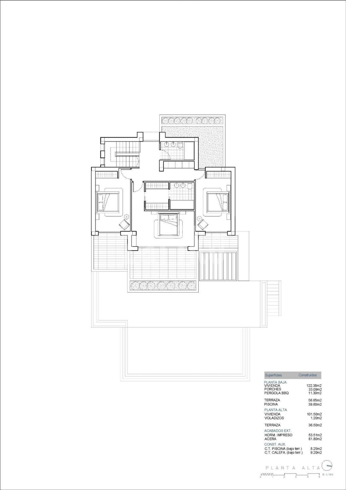 Sea view villa with Ibizan charm in La Fustera, Benissa This stunning newly built villa combines the elegance of contemporary architecture with the warmth and character of Ibizan design. Located in the sought-after area of La Fustera (Benissa Costa), it enjoys panoramic sea views and is just minutes from the beach, supermarkets, restaurants and other essential services. Set on a plot of over 1,000 m², the property is distributed over two levels and offers a total of 4 spacious bedrooms and 3 bathrooms. The ground floor features an open-plan layout with a large living room, dining area and fully equipped kitchen with island and breakfast bar. Floor-to-ceiling sliding doors connect the interior with a generous south-facing terrace, creating a perfect indoor-outdoor flow. This level also includes a bedroom and a bathroom. Outside, the villa boasts several relaxation and dining areas, a pergola-covered BBQ space, and an inviting swimming pool surrounded by lush landscaping and sun loungers. On the upper floor, there are three additional bedrooms (including the master suite with en-suite bathroom and private terrace), as well as a second terrace with beautiful views. The home is fully equipped for year-round comfort and includes underfloor heating, ducted air conditioning, and high-quality finishes throughout. Additional features include a technical room for the heating system and a separate room for pool equipment, both located underground to maximize space and functionality. Secure your dream villa in La Fustera, Benissa Costa, and embrace the ultimate Mediterranean lifestyle with breathtaking sea views and unmatched comfort.