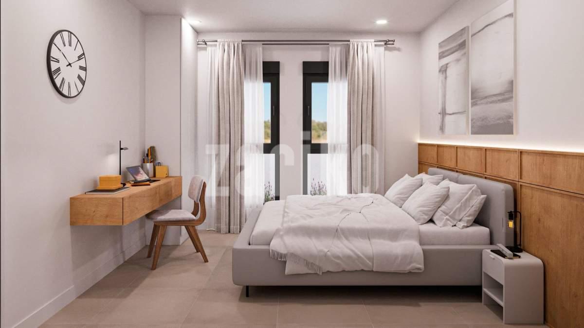 Newly built residential development of villas and townhouses in Fuente Álamo, Murcia. This location offers an exceptional natural environment, far from the hustle and bustle of big cities and the tourist pressure of the coast. Furthermore, we are committed to working from a sustainable development perspective, minimising our environmental impact and maximising integration with the local community. Here, your dreams of a peaceful and sustainable lifestyle become a reality. Imagine waking up every morning in a stunning natural setting, surrounded by peaceful landscapes and the unique beauty of the Murcian countryside. This development prioritises energy efficiency, the use of environmentally friendly materials and harmonious integration with the rural environment. From the design of the property to the planning of the development, we strive to reduce our carbon footprint and promote responsible practices in all our operations. Full ducted air conditioning, hot/cold. Video intercom system. Colour-lacquered security access door with lock and anti-vandal security fittings. Cupboards with storage space, lined inside, lacquered in white. Kitchen furniture with appliances included. Hot water by aerothermal energy. Electric blinds. Pergolas in solariums. Private 2.5x4.5m swimming pool with underwater night lighting and salt chlorination system. Pre-installation for outdoor kitchen/jacuzzi in solarium. Fuente Álamo de Murcia is a town and municipality in the Region of Murcia, in southern Spain. It is located 22 km northwest of Cartagena and 35 km southwest of Murcia. The town is located in the Mar Menor basin, surrounded by the Algarrobo, Los Gómez, Los Victorias and Carrascoy mountain ranges. The water from these mountains flows down into the Rambla de Fuente Álamo and then into the Mar Menor. Fuente Álamo is 30 minutes from Murcia - Corvera airport. Nearest shops 6 km away.