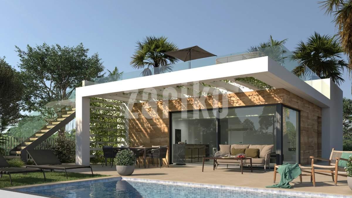 NEW BUILD RESIDENTIAL COMPLEX NEAR LA SERENA GOLF, LOS ALCAZARES 20 detached villas within a front line golf complex. The villas have 3 bedrooms and 3 bathrooms, basement with garage and storage room, private swimming pool and private solarium. Residential located in a frontline of the prestigious golf course "La Serena Golf". This golf course is well renowned for its lakes and vegetation that interweave with the golf course. The water and lakes are present in 16 of the 18 holes, but all the course is designed to offer the golfer different strategies in each hole. Another aspect that makes this golf course unique is that it's connected by walking to the city centre, something impossible to find in other golf locations that allow us to enjoy the calm and the beauty of the area without refusing the access to the services that Los Alcázares offers. Los Alcázares an exceptional area on the Costa Cálida at only 25 minutes from Murcia airport and 55 min from Alicante airport. The area is connected through highway with the cities of Cartagena, Murcia and Alicante and the rest of the beaches of the Costa Cálida and the Costa Blanca.