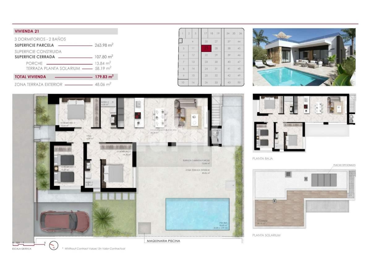 Exclusive Mediterranean Living in Lo Marabú, Ciudad Quesada Prime Location with Nature and Convenience Discover the charm of living in Lo Marabú, Ciudad Quesada, an exclusive residential area that combines modern comfort with the beauty of Mediterranean nature. Nestled in a prime location, this development offers easy access to essential services while providing a serene, tranquil environment. Just a short drive away, you’ll find the stunning salt lagoons of La Mata and Torrevieja, a paradise for nature enthusiasts, photographers, and those seeking wellness. Beautiful Beaches and Outdoor Activities Only 15 minutes away by car, the unspoiled beaches of Guardamar del Segura and Torrevieja invite you to enjoy golden dunes and crystal-clear waters. These coastal gems offer opportunities for relaxation, water sports, and picturesque walks along the shore. For outdoor enthusiasts, the area boasts numerous hiking and cycling trails, while golf lovers will appreciate the proximity to several prestigious golf courses, providing a first-class sporting experience. High-Quality Homes and Amenities This residential complex features thoughtfully designed homes, including: Bungalows: Ground-floor units with private gardens or top-floor options with solariums. All bungalows include two bedrooms, two bathrooms, a parking space, and a storage room, set around a central communal area with a swimming pool and landscaped gardens. Villas: Independent properties with three bedrooms and 2/3 bathrooms, available in one- or two-story layouts. Each villa includes a private pool, a solarium, and parking within the plot. Optional basements are also available. Modern Comfort and Exceptional Features Every home is built with top-quality materials and finishes: PVC windows with double glazing and remote-controlled motorized shutters. Electric underfloor heating in bathrooms. Ducted air conditioning installation. Villas with private pools (3.00 x 6.00 m) and stainless steel showers. Community pools with a children’s area for bungalow residents. As a special launch offer, select homes include white goods and a furniture package. Excellent Connectivity and Local Highlights Strategically located in Rojales, Alicante, this development offers excellent infrastructure and connectivity: Alicante-Elche Airport (ALC): 38 km (35 minutes by car). Murcia-Corvera Airport (RMU): 65 km (50 minutes by car). Proximity to major roads such as the AP-7 and N-332 ensures easy access to nearby cities and attractions. Local shopping centers, restaurants, and daily amenities are within walking distance. Embrace Mediterranean Living With its perfect blend of modern living, natural beauty, and unparalleled convenience, this residential complex in Lo Marabú is the ideal choice for those seeking a high-quality lifestyle. Don’t miss the chance to invest in your dream home in the heart of the Mediterranean. Contact us today to schedule a viewing or to learn more about this exceptional development!