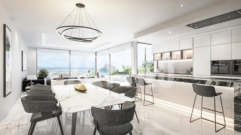 EXCLUSIVE VILLA WITH SPECTACULAR VIEWS New construction villa in Calpe with excellent views of the Sea, Peñón, and the bay of Calpe. High tech villa with excellent high standing construction materials. The House is built on 3 levels, connected by an interior elevator. The house has home automation, BBQ area, Chillout area, underfloor heating, Design garden, infinity pool. Located in the Maryvilla de Calpe urbanization, a short distance from the beach and all the necessary services.
