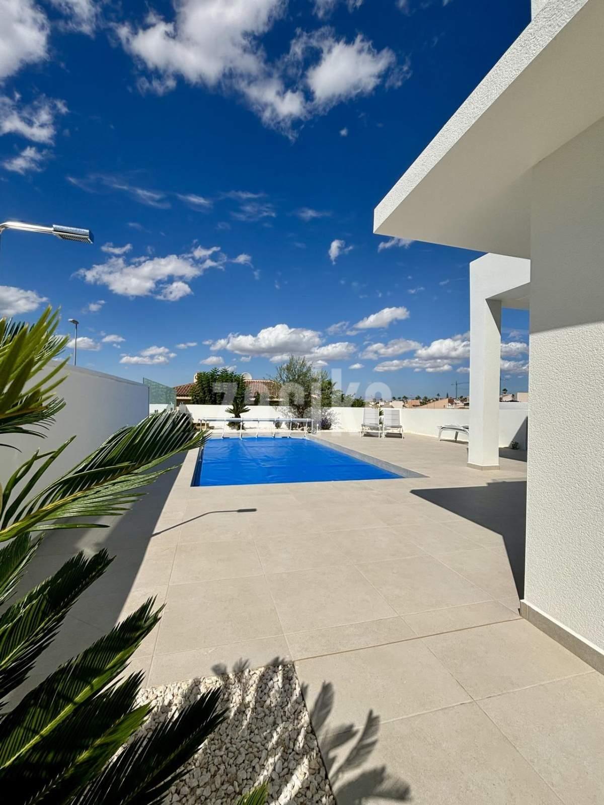 New Build Mediterranean Villas in Benijófar Modern and Stylish Villas in Benijófar Located on the outskirts of the charming town of Benijófar, these stunning, contemporary villas offer the perfect blend of modern design and traditional Spanish living. Benijófar, situated in the heart of Costa Blanca, is just 30 minutes by car from Alicante city and its international airport. The area is also conveniently located 8 km from golden sandy beaches and 10 minutes from two top-quality golf courses. Spacious Villas with Private Pools Each villa sits on a generous plot of over 400 m², featuring a private pool (7x3.5 m) and 3 bedrooms with 2 bathrooms, all on a single floor. Optional extras include a solarium and storage room. The villas are built to the highest standards, with top-quality finishes such as Schüco windows, motorized shutters, photovoltaic solar panels, and an automatic irrigation system for the garden. Traditional Spanish Town with Modern Amenities Benijófar is a traditional Spanish town known for its vibrant fiestas, weekly street markets, and picturesque town square. It borders Ciudad Quesada, just 2 minutes away by car, offering a wide range of amenities including restaurants, bars, shops, live entertainment, a summer water park, and a country club. This ideal location offers a perfect year-round residence to enjoy the sun, sea, and your own private pool in a peaceful, traditional setting.