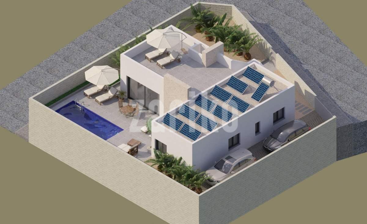 NEW BUILD MODERN VILLA IN BENIJOFAR New Build villa located in Benijófar, a privileged area of the Costa Blanca, equipped with all services, 20 minutes from Alicante Airport, near the beautiful beaches of Guardamar and several golf courses. It is a modern style villa consisting of an open-plan kitchen with spacious living-dining room, 3 bedrooms and 2 bathrooms. It also has a private plot with terrace, parking area, private pool. An options for a solarium at an extra cost. Benijofar it is a lovely village with a charming church and all services such as supermarkets, pharmacies, banks, restaurants and natural park located very close to the villas. There are several golf courses close by as well as water parks in nearby Rojales and Torrevieja. Benijófar located a few minutes from the N-332 and AP-7. Just 30 minutes from Alicante airport, 10 minutes from the beaches of Guardamar and Torrevieja.