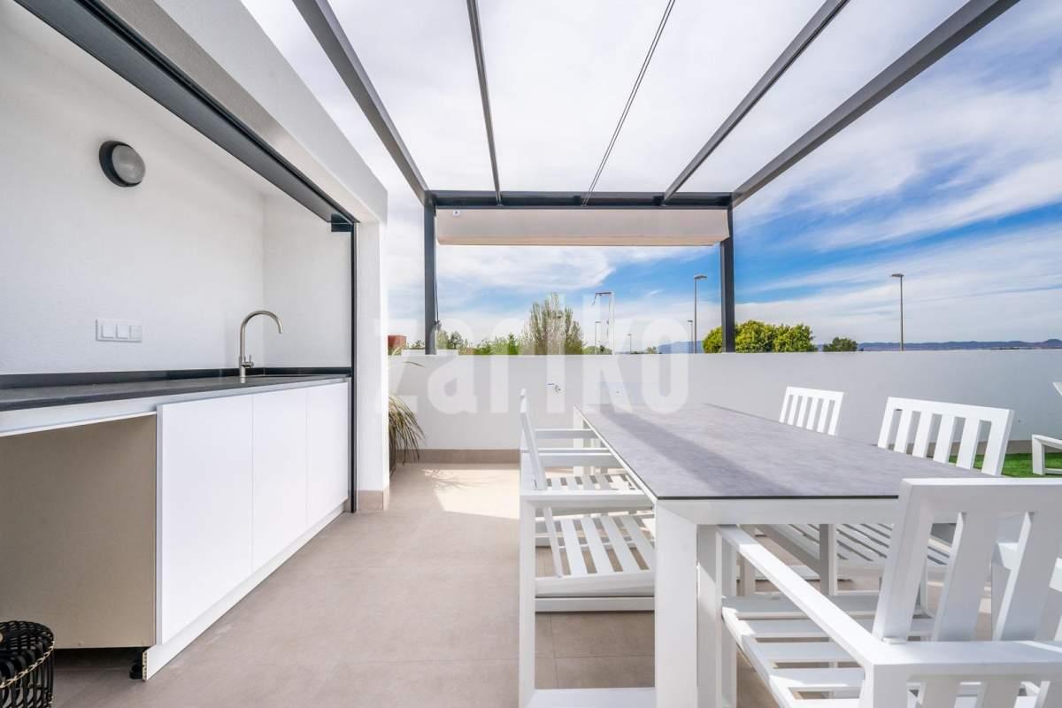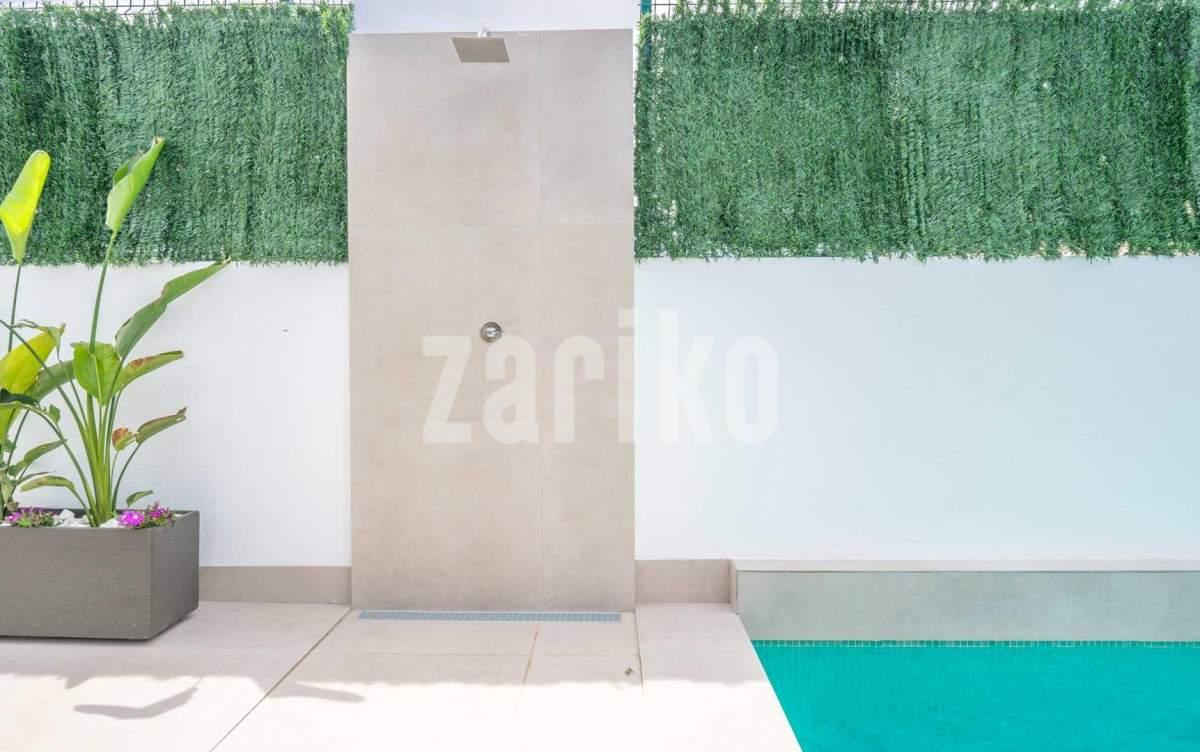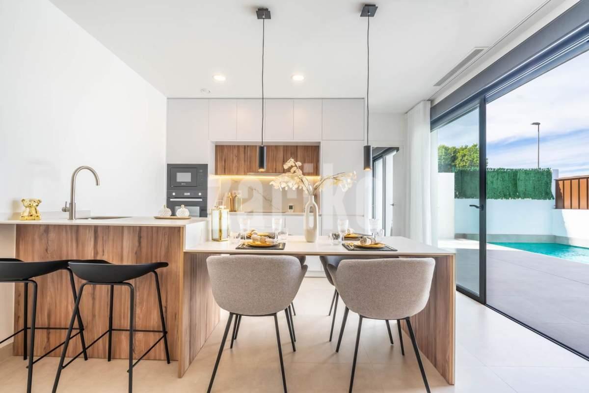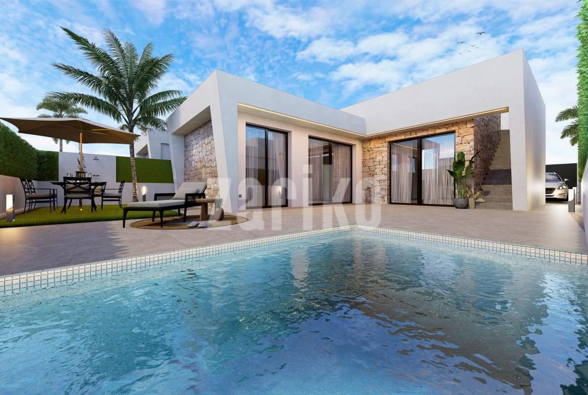 New Build Independent Villas with Private Pool and Solarium in Roldán, Torre-Pacheco Modern Single-Level Villas with Exclusive Design These brand-new 3-bedroom, 2-bathroom villas in Roldán, Torre-Pacheco, offer a contemporary and eco-friendly design with comfort and lifestyle in mind. Built on a single level, each home features a spacious open-plan living and dining area with a fully equipped modern kitchen, seamlessly connected to large terraces and a rooftop solarium. The villas are thoughtfully designed to blend functionality and aesthetics, with angled stone-clad facades, sleek finishes, and plenty of outdoor space to enjoy the Mediterranean sun all year round. Private Outdoor Space and Premium Features Every villa comes complete with: Private swimming pool and outdoor shower Roof-top solarium with ample space for sunbathing or creating a chill-out zone Terrace and garden areas on the ground level Private driveway for off-road parking LED lighting package for both interior and exterior Pre-installed air conditioning system The master bedroom includes an en-suite bathroom, while two additional bedrooms share a family bathroom, all designed with a contemporary touch and high-quality finishes. Ideal Location Close to Beaches and Golf Roldán is a charming Spanish town in the municipality of Torre-Pacheco, known for its traditional ambiance and complete range of daily services, including supermarkets, restaurants, healthcare facilities, and schools. The location offers proximity to several key attractions: Corvera Airport (RMU) – 15 km Beaches of the Mar Menor and Mediterranean Sea – 20 km Golf courses (La Torre Golf and Las Terrazas de La Torre) – within 4 km Cartagena city centre – 32 km Zenia Boulevard Shopping Centre – 35 km Marina of Los Alcázares – 22 km Whether you're seeking a holiday home, permanent residence, or a strong rental investment, this location offers easy access to coastal attractions, sports facilities, and urban convenience. Your New Life in the Sun Awaits Don’t miss the opportunity to own one of these stylish new villas in Roldán. Contact us today for more details, to arrange a visit, or to secure your new home on the Costa Cálida before they're all reserved.