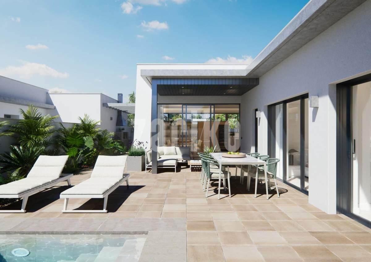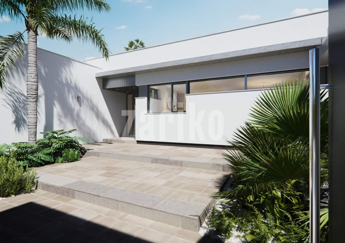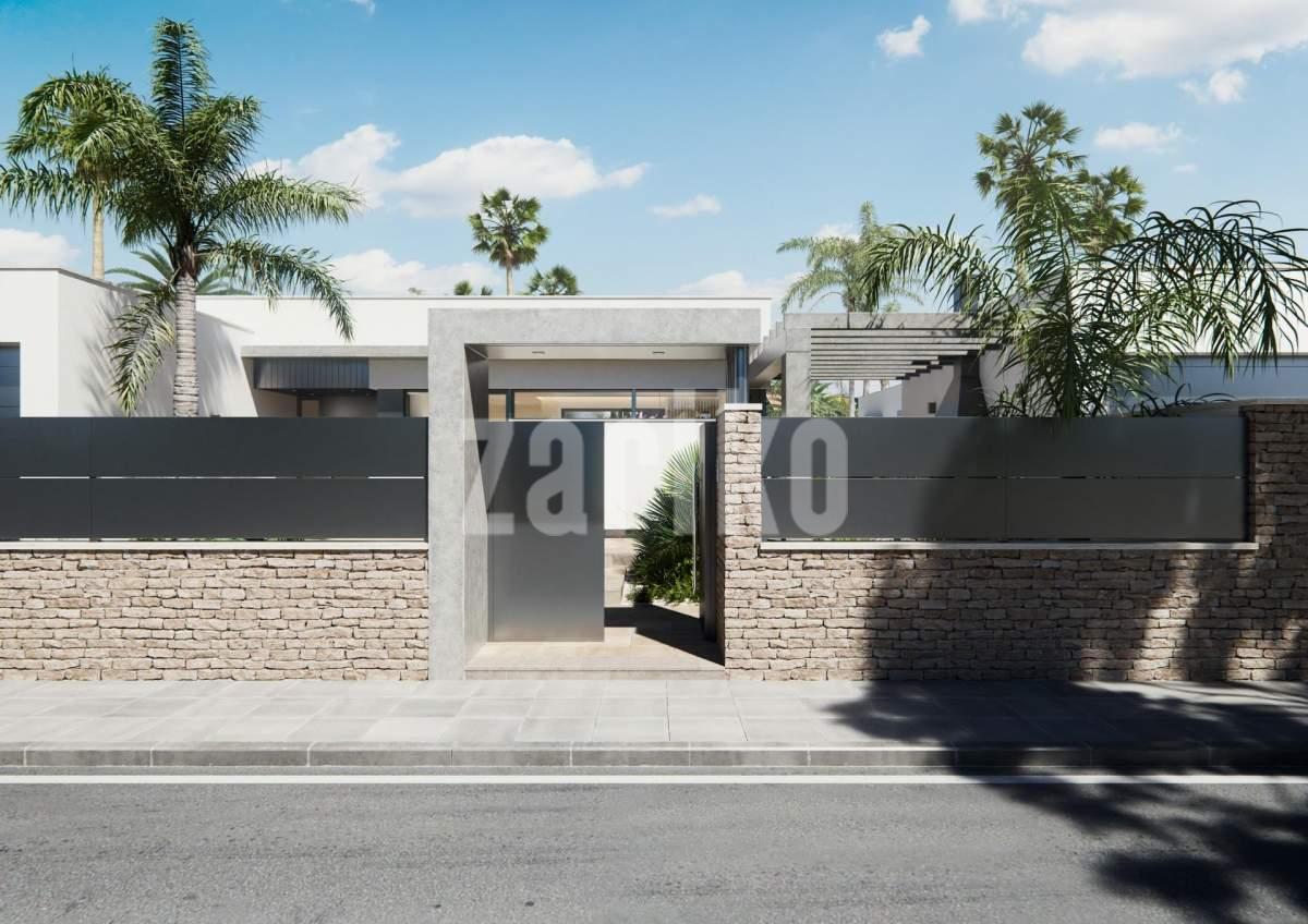 NEW BUILT VILLA ON A FLOOR Three exclusive villas in a residential area in San Javier with 600 m2 of plot and 217 m2 of built area on one floor, private pool and large garden areas. Residential with an architectural design based on clear, cubic and functional lines in an exclusive residential enclave in San Javier (Murcia). Automated garden and garage access doors with infrared remote control. Large covered garage for two vehicles with separate entrance. Gardens with a water drainage system on the floor, completely finished and customizable including vegetation, irrigation and lighting.