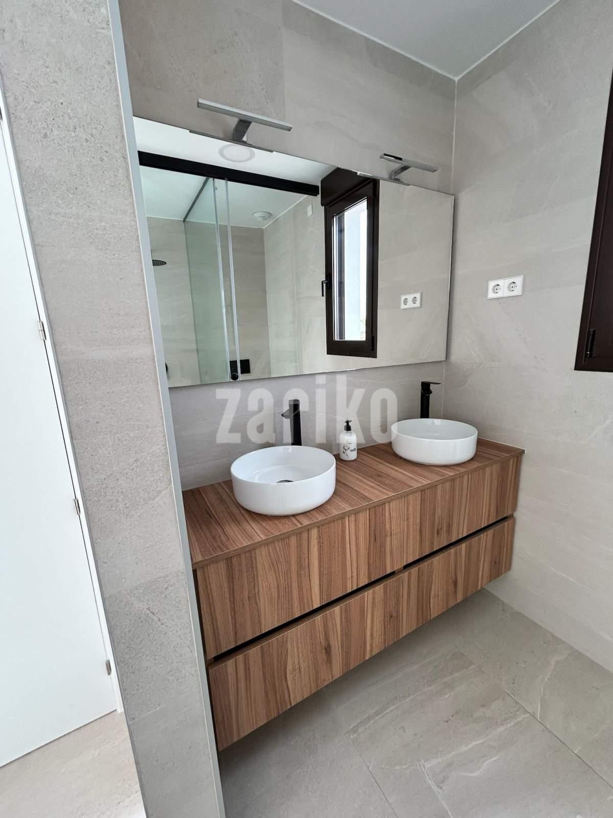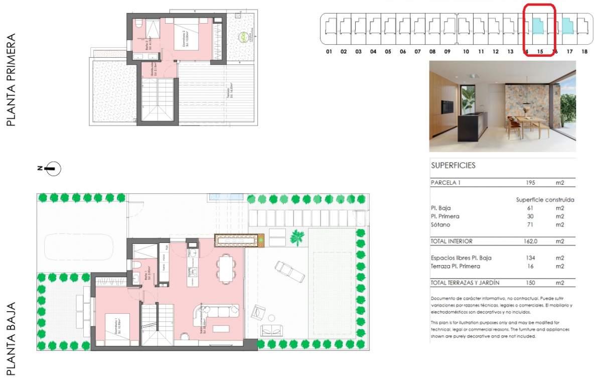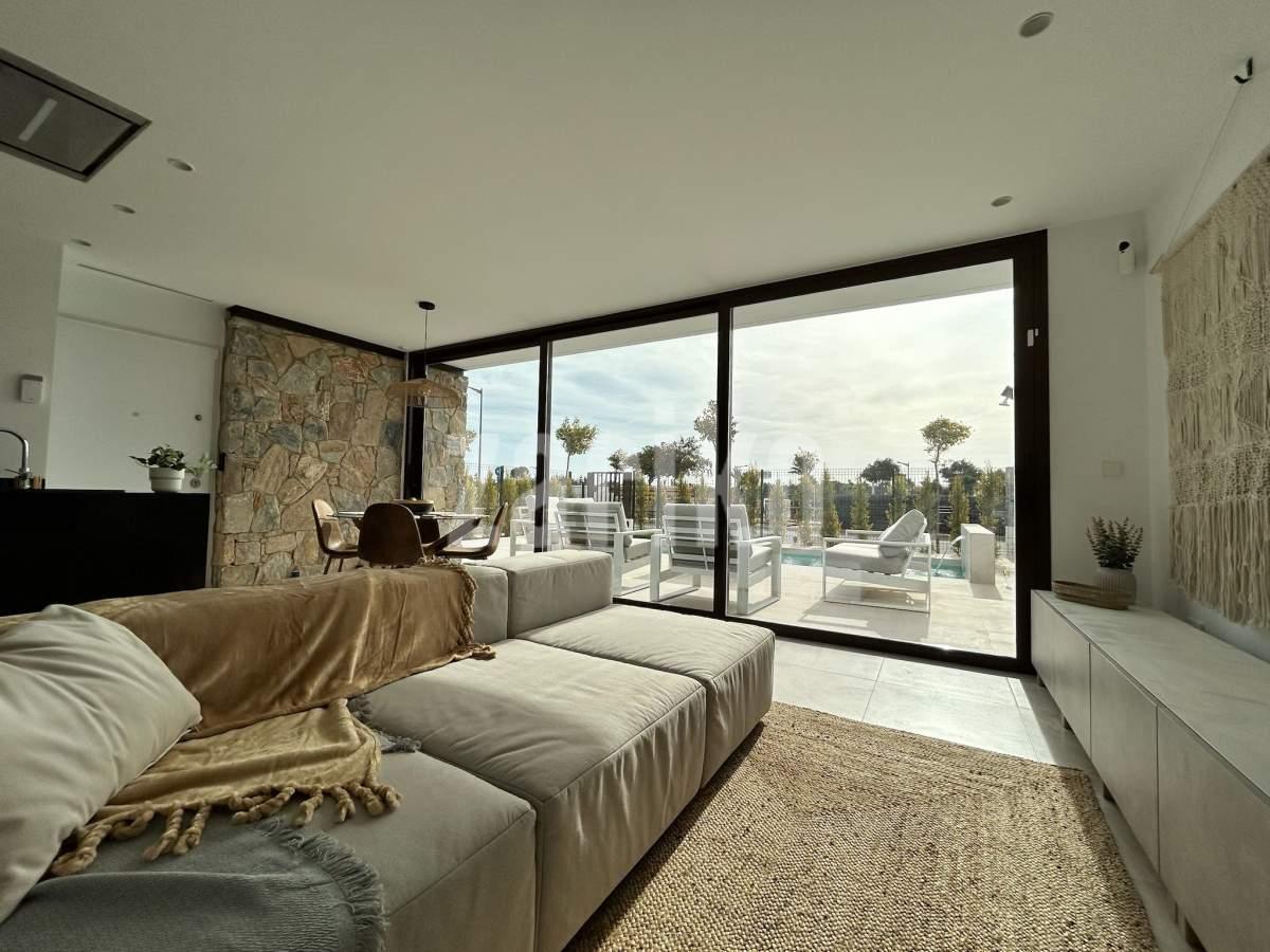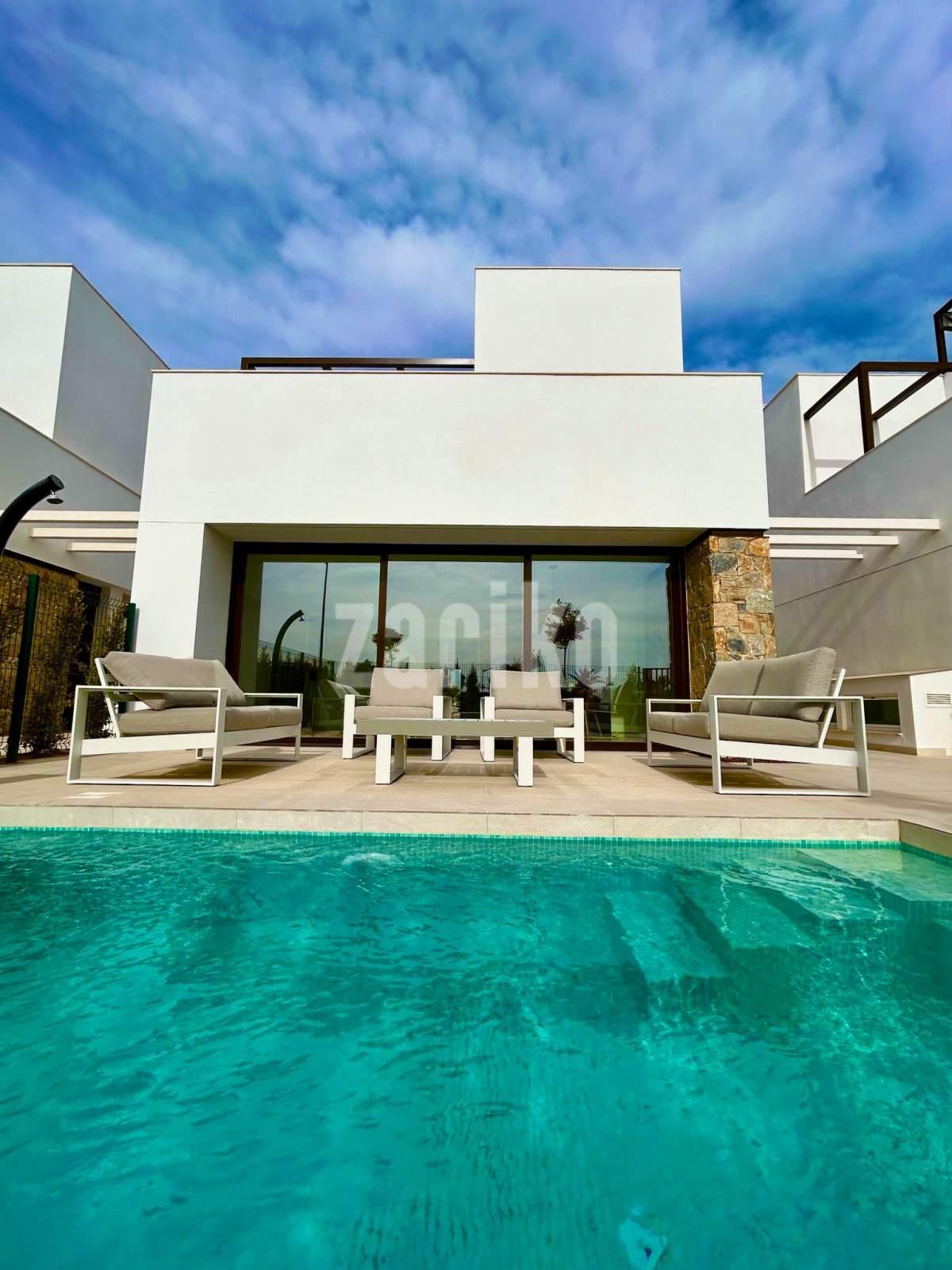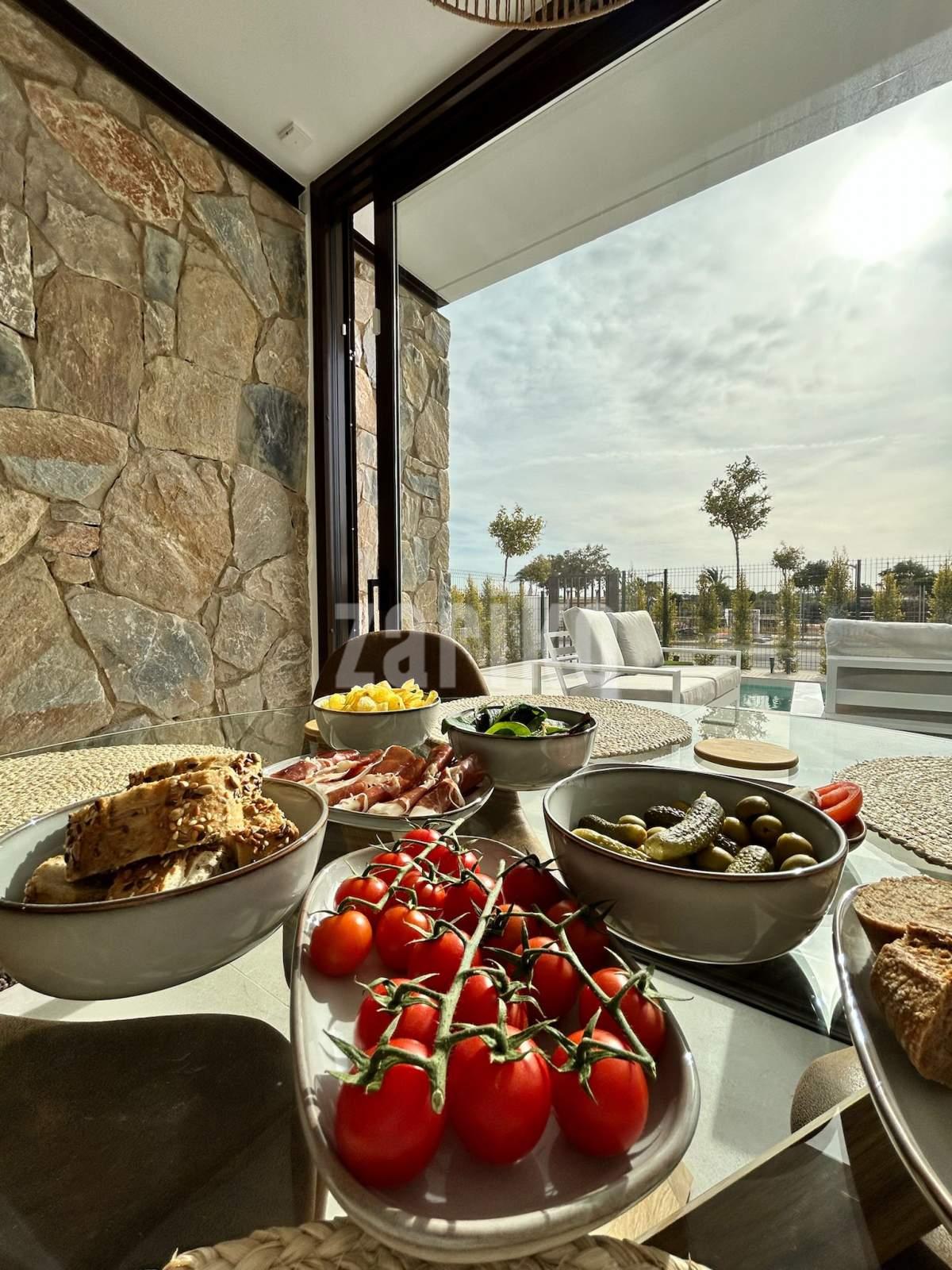 We are delighted to offer for sale this fantastic South facing Lavanda style villa located on the extremely desirable Santa Rosalia Lake and Life Resort in the Region of Murcia. Originally a two bedroom villa, a third bedroom has been added in the finished basement creating additional accommodation.The villa is beautifully presented and furnished to the highest standard, all of which is included in the sale. The ground floor comprises an open plan living room and contemporary kitchen and built-in appliances. Sliding doors open into the garden which features sun bathing areas, an outdoor shower and a private swimming pool. Also on the ground floor is a double bedroom with fitted wardrobes and a bathroom. On the first floor there is a master bedroom with fitted wardrobes and an en-suite bathroom along with a sun terrace. The spacious 56m basement houses another double bedroom, bathroom and is also currently being used a TV/cinema room. This is a superb villa located on a gated secure resort. The resort features the largest Crystal Lagoon man made lake in Europe. The lagoon has sandy beaches, a beach bar and lovely restaurant. Elsewhere on the resort there is disc golf, yoga and picnic areas, walking and jogging tracks and sports facilities. Please contact us to arrange a tour of the resort and a viewing of this lovely villa.