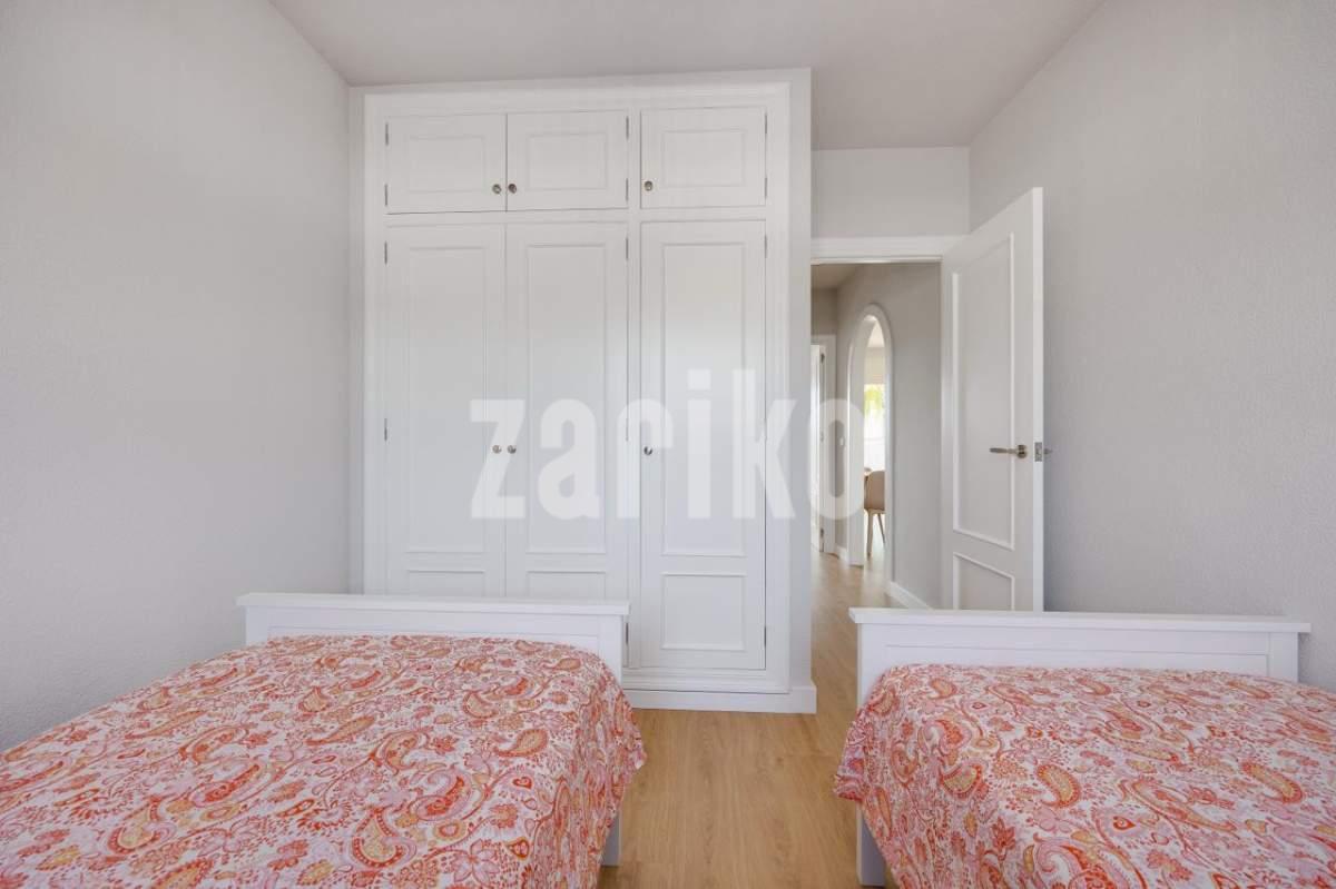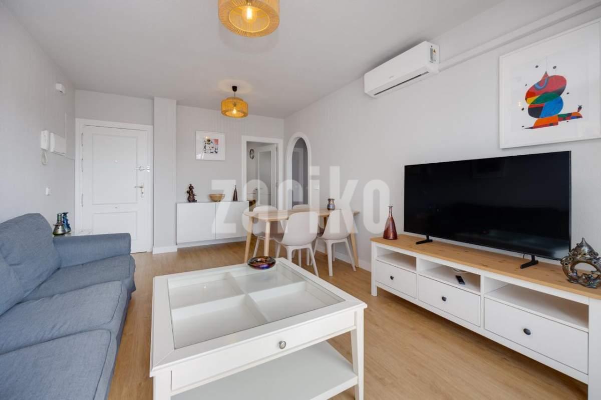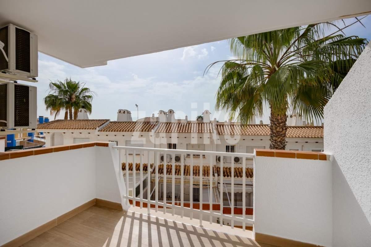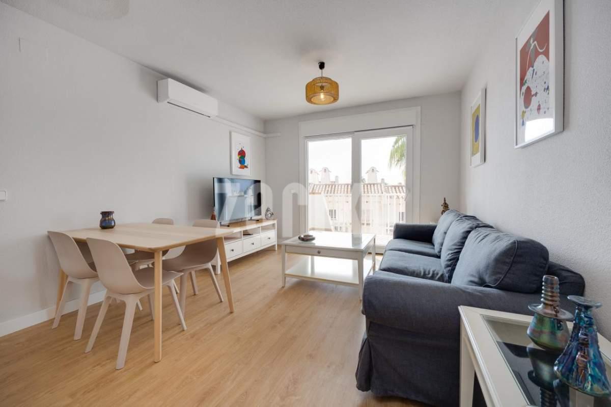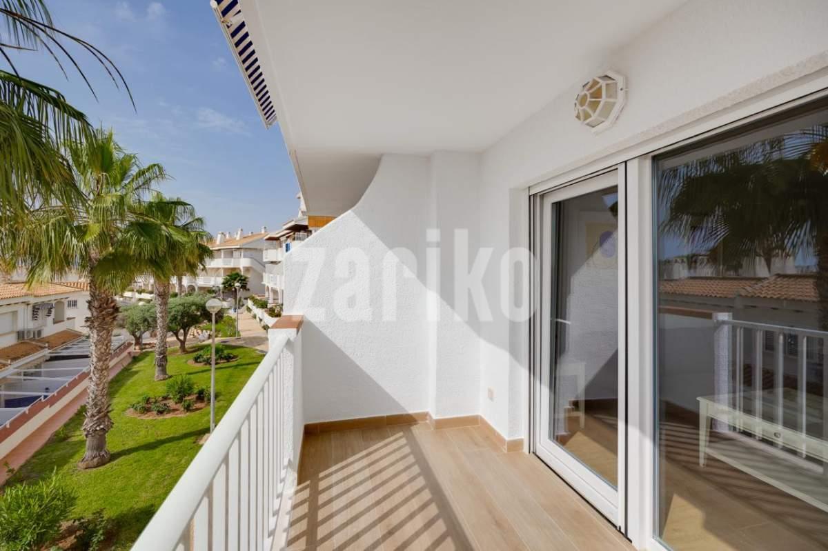 Ready to move into this beautiful, fully renovated first-floor apartment with 2 bedrooms, located just 300meters from the Aquamarina – Dehesa de Campoamor Beach. This modern apartment has70 m² and consists of 2 bedrooms with fitted wardrobe,1 modern bathroom with shower, spacious and bright living / dining area with a large sliding door that opens onto a 12 m2 sunny balcony overlooking the community green area, making it the perfect place to relax, have breakfast, or watch the sunrise over the Mediterranean Sea and as well as a independent fully equipped kitchen with utility area. The apartment is located in a residential complex with a communal pool, fully furnished and is equipped with air conditioning C/W in all rooms to ensure maxim um comfort throughout the year. Just a short walk from supermarkets ,restaurants, cafes, pharmacy, beach bars, water sports and all kinds of services, it is very close to Zenia Boulevard, the largest shopping centre in the province of Alicante with over 150 shops. Just a 10-minute drive takes you to 4 internationally renowned golf courses Villamartín, Las Ramblas, Campoamor and Las Colinas. Aquamarina - Dehesa de Campoamor Beach is one of the most sought-after areas of Orihuela Costa, perfect for permanent residence or investment. Don't miss the opportunity to live the dream in this magnificent apartment by the sea with exceptional amenities on your doorstep! The airports of Alicante and Murcia (Corvera) are only 45 min drive away. This highly popular area with close proximity to ALL amenities makes this property perfect for a holiday home, permanent residence or a great rental opportunity, so be quick as it will not be on the market for long. MUST BE SEEN !