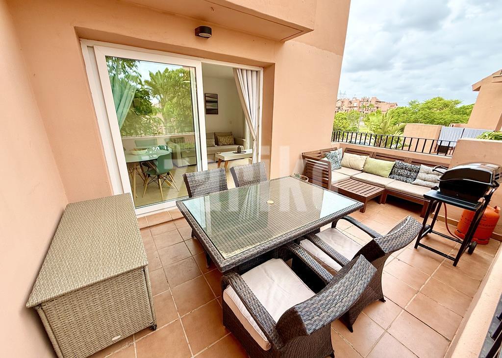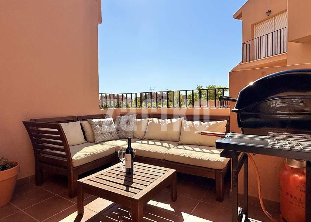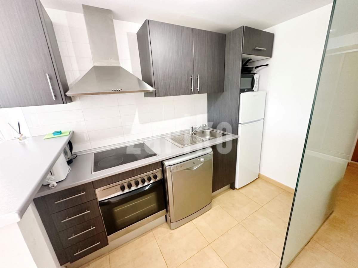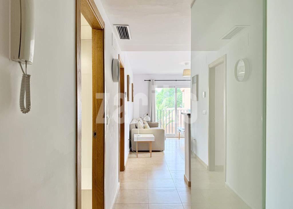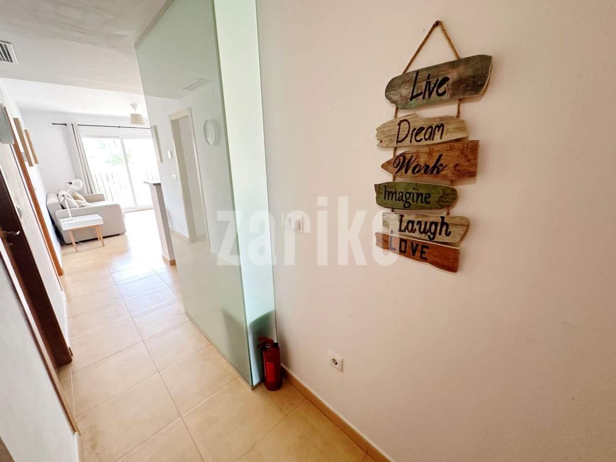 We are thrilled to offer this one bedroom one bathroom first floor apartment located on Mar Menor Golf Resort which has ample abrs, restaurantes and amenities. This resort is just 5 kms to the beach and the coastal town of Los Alcazares and just 25 minutes drive to murcia Airport.On entering this apartment there is a double wardrobe to your right which on one side is the boiler nad washing machine. Down the hallway and on the left is the family bathroom which has a window for ventilation. The kitchen is open plan with a breakfast bar and leads into the lounge which is bathed in light due to a window and the large patio doors that take you onto one of the two terraces. Off the lounge is the large master bedroom which has fitted wardrobes and patio doors to the south west facing terrace. This property comes with underground parking with lift access, new Hisense vented AC and comes furnished.
