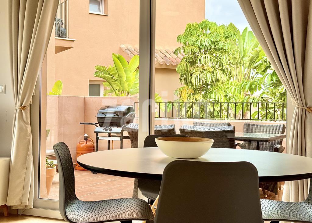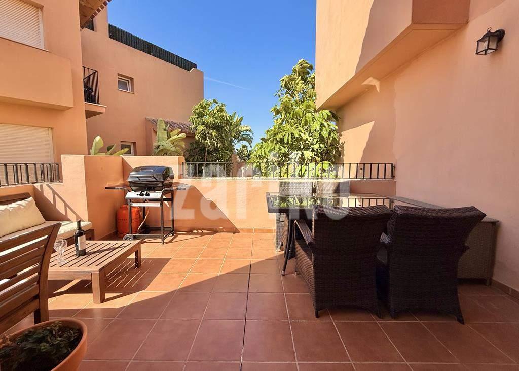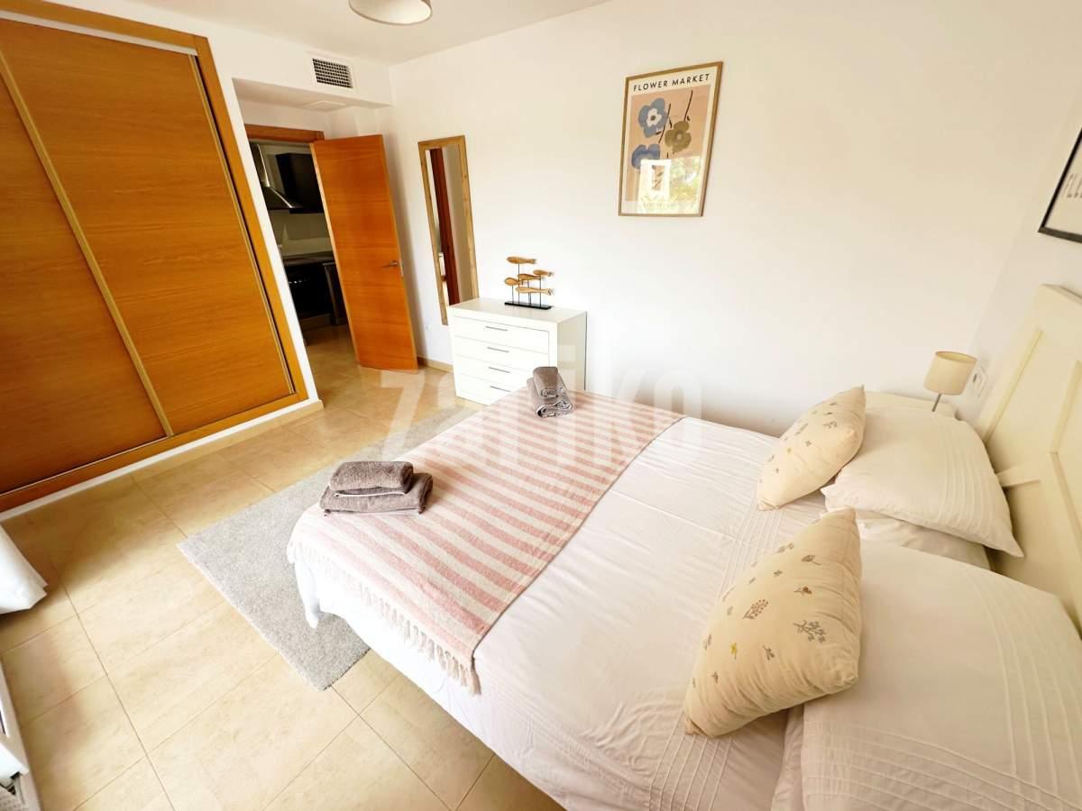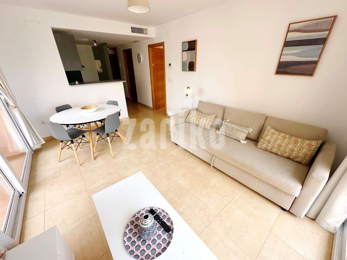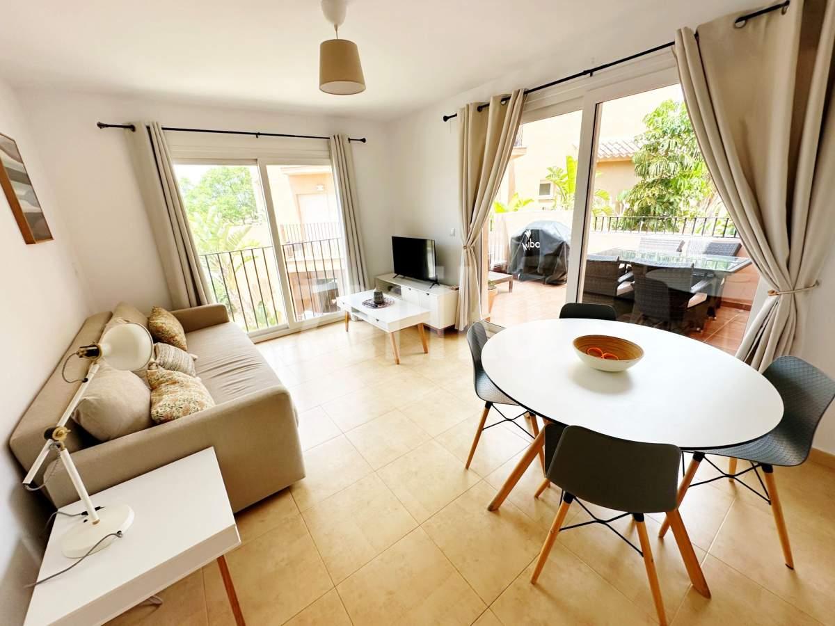 We are thrilled to offer this one bedroom one bathroom first floor apartment located on Mar Menor Golf Resort which has ample abrs, restaurantes and amenities. This resort is just 5 kms to the beach and the coastal town of Los Alcazares and just 25 minutes drive to murcia Airport.On entering this apartment there is a double wardrobe to your right which on one side is the boiler nad washing machine. Down the hallway and on the left is the family bathroom which has a window for ventilation. The kitchen is open plan with a breakfast bar and leads into the lounge which is bathed in light due to a window and the large patio doors that take you onto one of the two terraces. Off the lounge is the large master bedroom which has fitted wardrobes and patio doors to the south west facing terrace. This property comes with underground parking with lift access, new Hisense vented AC and comes furnished.