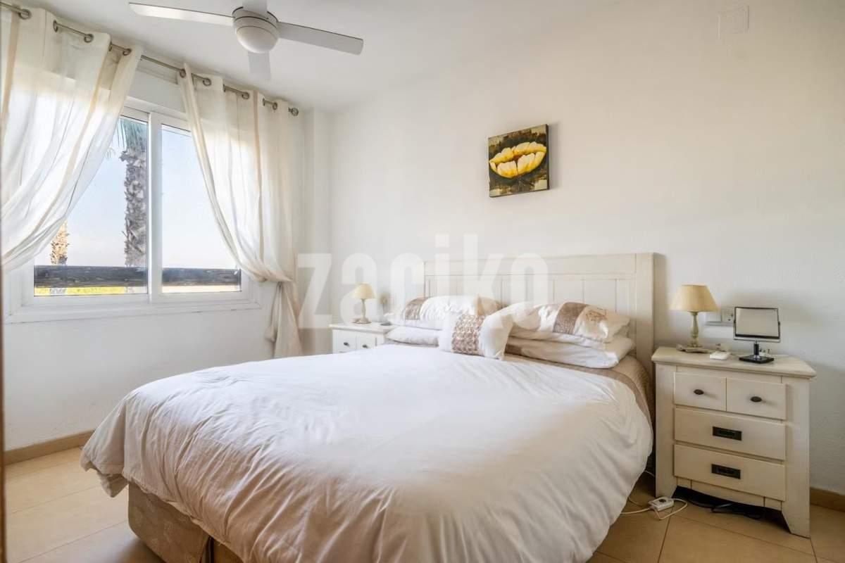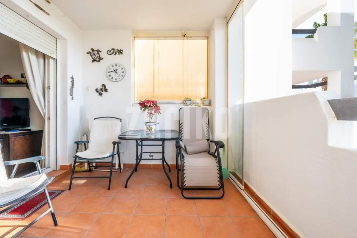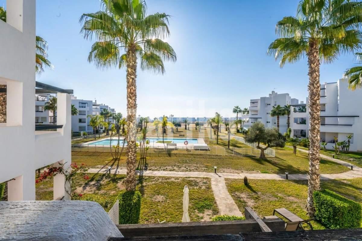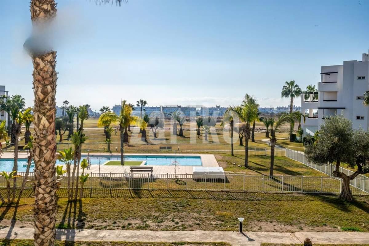 South east facing first floor apartment with glass curtains and views over the pool to the golf located on Terrazas de la Torre Golf Resort just 15 minutes drive to the beach and Murcia Airport.This property has a good sized open plan kitchen with breakfast bar, the lounge has patio doors that lead to the south east facing balcony which has had glass curtains installed. There are two bedrooms with fitted wardrobes, the master bedroom has patio dooors to the terrace. The family bathroom has been upgraded with a walk in shower. There is lots of parking spaces and there is lift access.