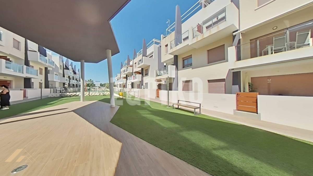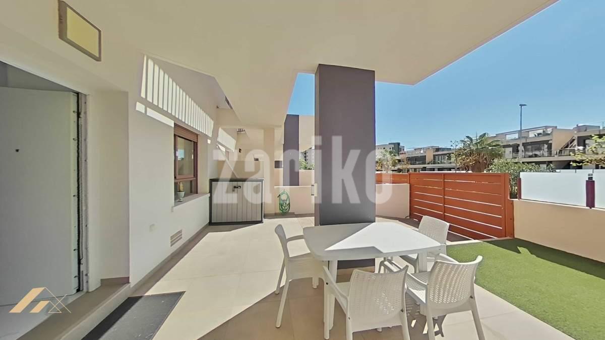 Discover this magnificent 2020 home, fully renovated and furnished, ready to move in. It is a ground-floor bungalow with an elevator, very bright thanks to its north-south orientation, ideal for enjoying the Mediterranean breeze all year round. The property features 2 spacious bedrooms and 2 full bathrooms, as well as two terraces perfect for relaxing or sharing moments with family and friends. It also includes a storage room and garage, providing convenience and extra space for storage. The bungalow offers a high level of comfort with central heating and communal areas designed for enjoyment: a community pool, large gardens, and a playground next to the pool, perfect for families. The location is unbeatable: very close to Mil Palmeras beaches, as well as supermarkets, restaurants, schools, and a health center, making this property a perfect option for both permanent residence and vacations. In short, a modern, bright home with all the comforts in one of the most sought-after areas of the Costa Blanca.