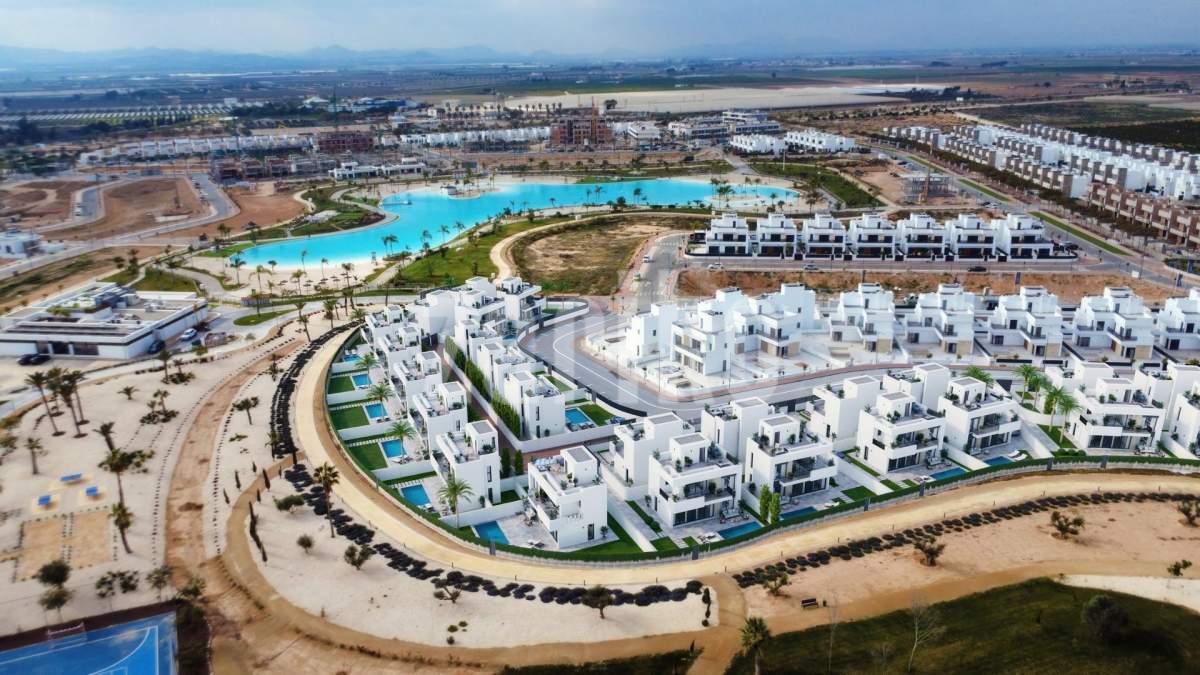 New Build Luxury Villas at Santa Rosalía Lake and Life Resort – Exclusive Villas in a Premier Private Resort in Murcia Discover a unique opportunity to embrace an exceptional lifestyle at Santa Rosalía Lake and Life Resort, one of the most innovative and sought-after residential communities in the Region of Murcia. This new development features 29 modern villas that offer luxury, privacy, and direct access to all the services and leisure amenities that make this resort truly special. Each villa includes three bedrooms and four bathrooms, distributed over two floors, plus a spacious basement level and a rooftop solarium. The basement benefits from natural light and ventilation through an English patio and offers ample space to create additional bedrooms, a home cinema, gym, or games room tailored to your personal needs. The private 18 m² swimming pool is designed for both relaxation and entertainment, featuring a stylish island and integrated jacuzzi. These homes are built to high standards, combining comfort, luxury, and sustainability. Exterior PVC joinery includes motorised blinds and airtight sliding doors, while the main entrance is secured with an armoured door and a motorised gate. Bathrooms are fitted with LED mirrors and safety glass shower screens. The kitchen is fully equipped with BOSCH appliances. The solarium includes pre-installation for a summer kitchen and two photovoltaic solar panels. Ambient LED lighting enhances the garden, terrace, and rooftop spaces, creating an inviting atmosphere. Santa Rosalía Lake and Life Resort is a secure, gated community with 24-hour security, centred around a stunning 126,000 m² green area and a 17,000 m² crystal-clear artificial lagoon. Residents enjoy white sandy beaches lined with palm trees, two islands – one featuring a bar – and charming beach chiringuitos. There are walking and cycling trails, sports facilities including tennis, paddle and mini-golf, landscaped gardens, dog parks, and a social clubhouse. The location is outstanding. Just 4 km from the beaches of Los Alcázares, 10 km from La Serena Golf and Roda Golf, 15 km from the historic city of Cartagena, and 22 km from Murcia International Airport. Local supermarkets and services are only 2.5 km away. Whether you're looking for a holiday home, a permanent residence, or an investment opportunity, these villas offer unmatched quality, a vibrant lifestyle, and a prime location in the heart of the Mediterranean. Contact us today to arrange a viewing – your dream villa at Santa Rosalía Lake and Life Resort is waiting for you.