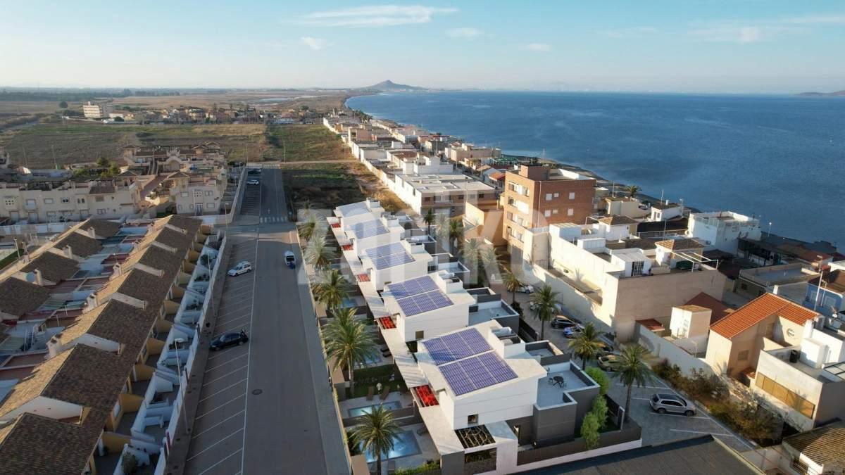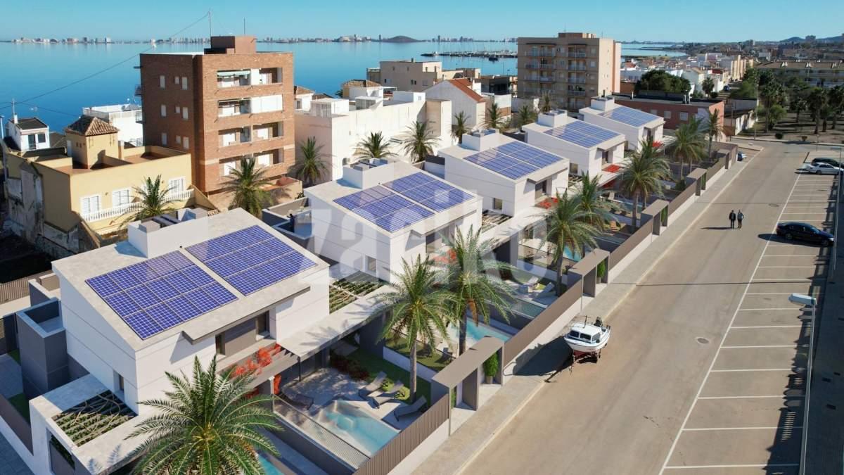 NEW BUILD SEMI-DETACHED VILLAS IN LOS NIETOS, LA MANGA MAR MENOR New Build semi-detached villas in Los Nietos, Murcia. We offer for sale 6 villas with 3 bedrooms and 3 bathrooms. These exclusive houses are designed with elegant and functional interiors, fully equipped kitchen, appliances included. The bathrooms have a vanity unit with washbasin and light. The bedrooms include lined wardrobes with drawer units and each property has pre-installation for ducted air conditioning. The exteriors are no less impressive, including a private swimming pool and a large solarium with Summer kitchen so you can enjoy the sun all year round. In addition, the houses have solar panels installed. Sandy beach of Los Nietos on the western shore of the Mar Menor stretches for 2.7 kilometres in front of the urban area of Los Nietos, averaging 15 metres in width. Due to its position in front of the main residential area of this outlying district of the Cartagena municipality, it enjoys high occupation during the summer mo although winter visitors can enjoy virtual silence as many of the properties here are owned by residents of the cities of Murcia and Cartagena or further afield, who enjoy the area for their summer holidays. This is a Mar Menor beach, enclosed within the protective circle of what is, essentially, Europe's largest saltwater lake, although it's often difficult to think of this as a lake as it is fed by the Mediterranean, and is on the Mediterranean coastline.