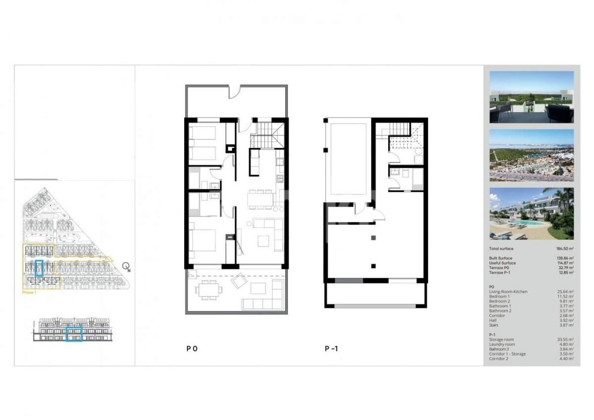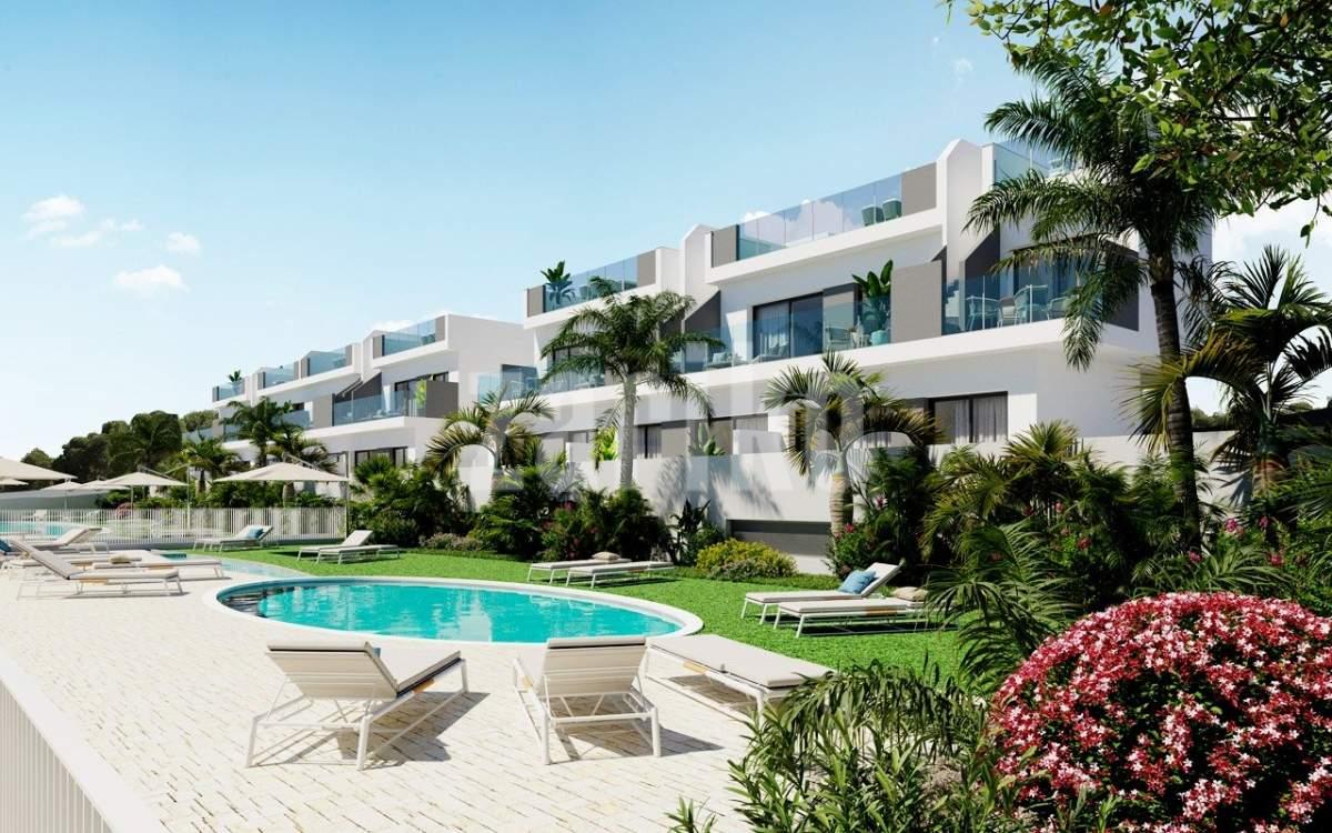NEW BUILD RESIDENCIAL IN LOS BALCONES, TORREVIEJA New Build residential complex of semi-detached villas and bungalows located in Los Balcones with the views to the pink lake. New Build top floor bungalows has 2 bedrooms, 2 bathrooms, open plan kitchen with spacious living room, fitted wardrobes, terrace, private solarium and underground parking space. New exclusive residential with big communal areas; gardens, garden-gym, playground, 2 big communal swimming pools - one of them for adults, and the other one for children. Los Balcones is a small town located near Torrevieja south. Torrevieja is a Spanish town in the province of Alicante, on the Costa Blanca. It is known for its typically Mediterranean climate and coastline. It has boardwalks with resorts along its sandy beaches. The small Museum of the Sea and Salt houses exhibitions on the fishing and salt history of the city. In the interior, the Lagunas de La Mata-Torrevieja Natural Park has trails and two salty lagoons, one pink and the other green. Alicante airport located 40 minutes away and Murcia airport about 1 hour away.