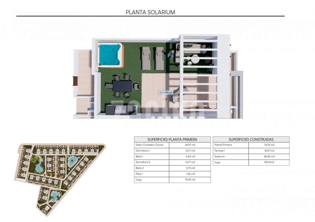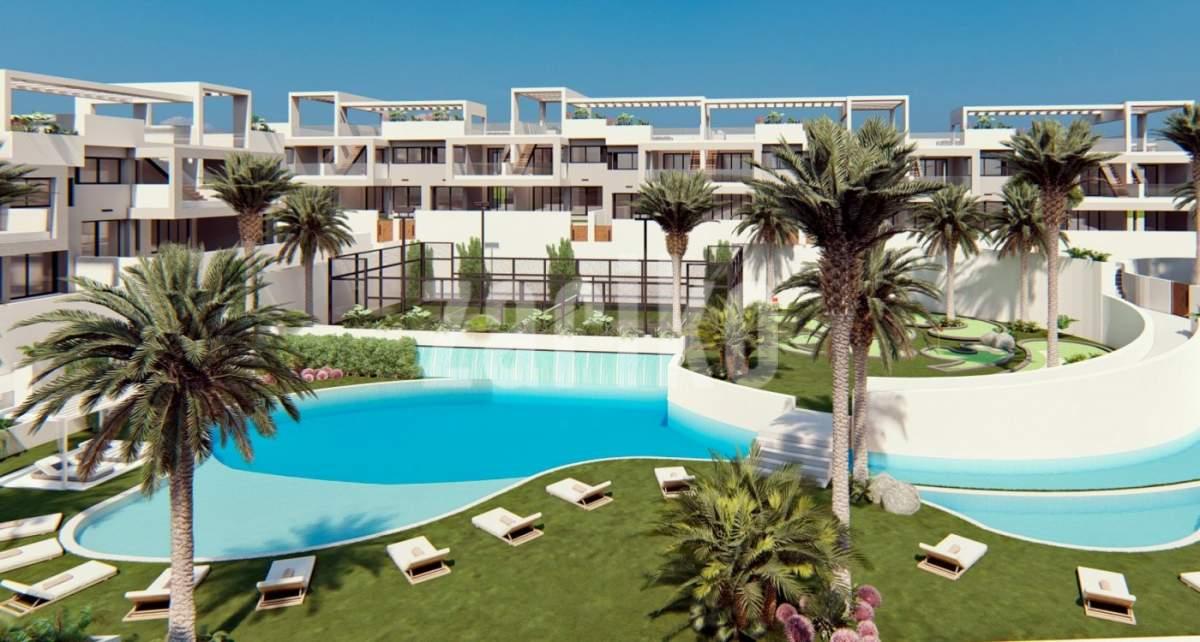 NEW BUILD RESIDENTIAL OF BUNGALOW APARTMENTS IN LOS BALCONES New Build UNIQUE residential complex in Los Balcones. Residential consist of 136 luxury bungalow apartments built with top quality materials. Each one has magical views of the Laguna Rosa de Torrevieja and the Mediterranean Sea. The houses have more than 131m2 distributed in a spacious living-dining room with an open-plan kitchen, 2 large bedrooms and 2 full bathrooms. You can choose between ground floor bungalows with their 2 large private terraces to enjoy the climate of the Costa Blanca. Or first floor bungalows of 178m2 with its 85m2 solarium with panoramic views of the Laguna Rosa and the Mediterranean Sea Complex offers idyllic landscaped common areas with 3 swimming pool areas, Jacuzzi areas, fitness area, paddle tennis court, mini golf, children’s area, charging point for electric vehicles… and much more! Its Premium facilities and green areas will allow you to enjoy with your family and friends the 320 days of sunshine that the Costa Blanca offers. Los Balcones located just outside Torrevieja with all accessible services, just 5 minutes from Playa de los Náufragos, supermarkets, the school and the La Zenia Boulevard Shopping Centre, and a minute from Torrevieja University Hospital. Complex located 40 minutes from Alicante airport and 1 hour Murcia - Corvera airport.