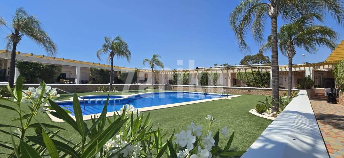 Discover this charming townhouse located in the peaceful area of Mil Palmeras, an ideal place to enjoy the sun and the sea. This nearly-new property offers two comfortable bedrooms that ensure rest and comfort. Its southeast orientation allows you to make the most of daylight hours with natural light. Enjoy a spacious enclosed glazed living room that connects to a terrace—perfect for relaxing or sharing unforgettable moments with family and friends. The plot has a total area of 213 m² where you can create your ideal outdoor spaces; imagine having your own barbecue next to a beautiful garden, perfect for sunny days. Additionally, you’ll be just 200 meters from stunning beaches that invite you to practice water sports or simply delight in their scenic beauty. A parking space is included, which is very practical given the seasonal demand from visitors in this popular coastal area. You will also have access to a communal swimming pool where you can cool off during warm summer days while enjoying open views from your special corner-end spot. This townhouse is not only perfect as a permanent residence but also as a holiday investment thanks to its proximity to the Mediterranean coastline.